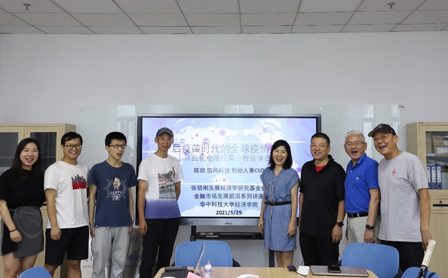 随后,信风科技创始人兼CEO陈剑博士以“后疫苗时代的全球疫情走势——从量化金融视角分析疫情趋势”做主题报告,介绍了陈剑博士与张文宏教授团队等合作的诸多成果,包括全球疫情预测模型、全球疫情风险指数模型、疫苗交付模型、传染并防控决策支持系统等。上海对外经贸大学金融学院嵇尚洲副教授介绍了其研究团队在“长三角提升产业链供应链可控能力研究”方面的研究成果。上海交通大学顾政平教授、上海对外经贸大学网球协会会长、经贸学院陈宏教授等多位专家学者与在读的硕博士研究生参与研讨。