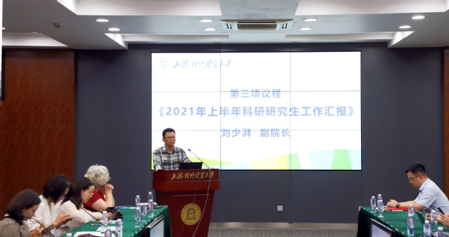 刘少湃副院长向全体教职工通报了学院2021年上半年科研及研究生工作情况。感谢全院老师对2021年研究生复试工作的支持,经过2轮在线复试2021年我院共计招生19位同学,创我院旅游硕士点录取人数新高,达到历史最高点。同时指出,学院今后要以申报国家级和省部级项目为抓手,进一步促进科研团队建设,提升申报质量,提高命中率,争取在科研项目、科研经费及发表高水平论文上取得新的突破。