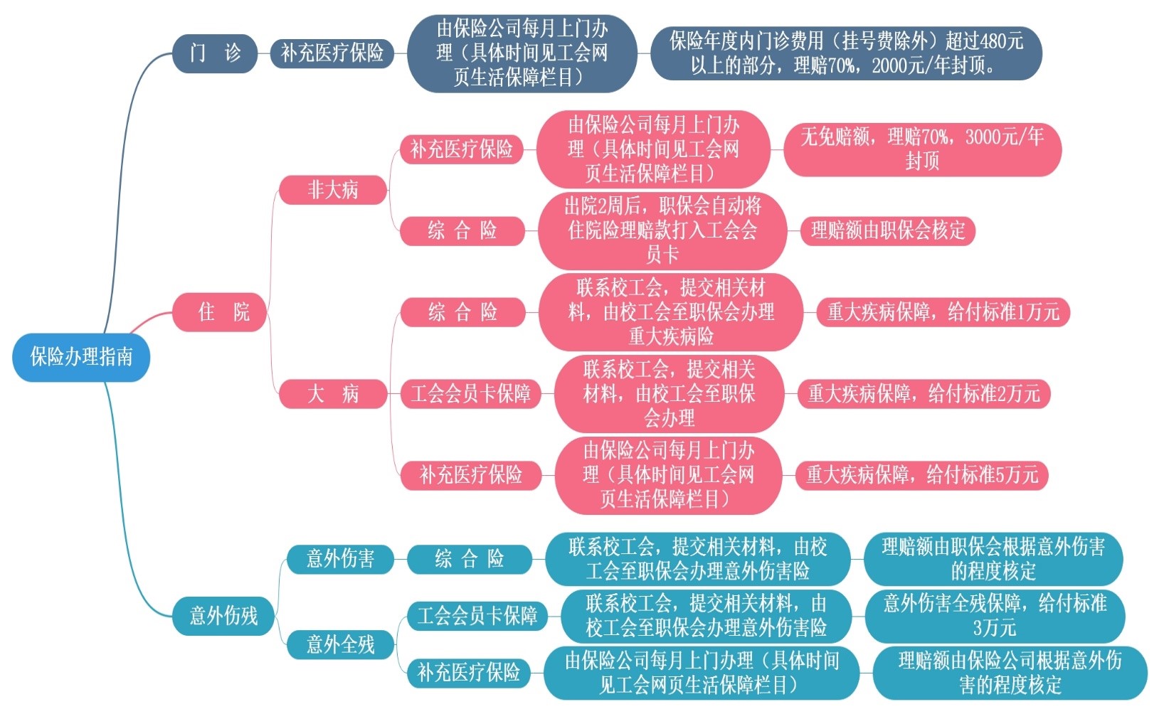 5.教职工在办理理赔时,因涉及个人隐私,请本人主动向受理保险的工作人员提出需要办理的保险内容,如不清楚可以咨询,以避免遗漏办理。