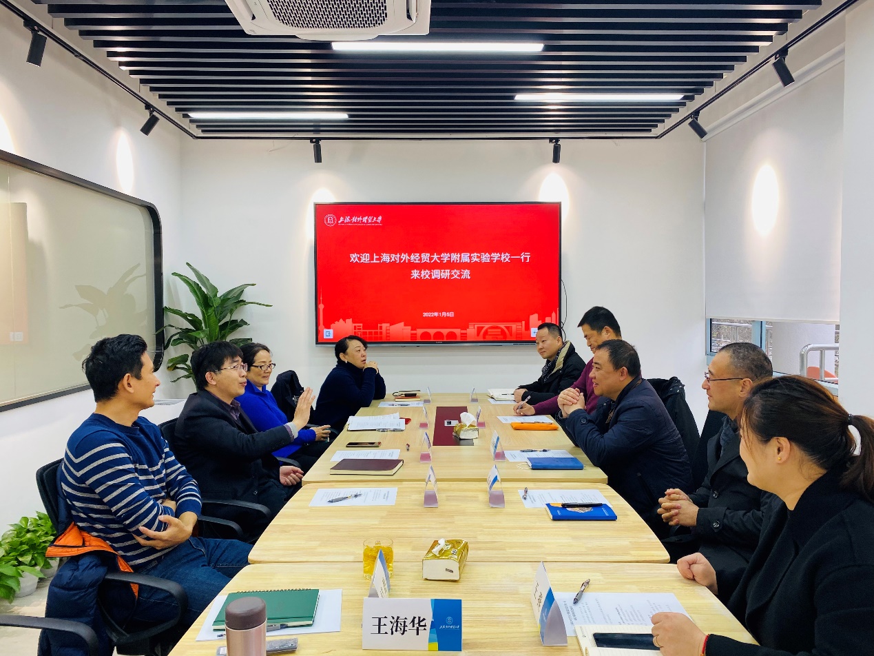 2022年1月5日上午,上海对外经贸大学附属实验学校花园分校党总支书记汪海鲸、上海对外经贸大学附属实验学校党总支书记张辉、副校长高仁才、工会主席王燕、马少兵一行来校工会调研交流。校工会常务副主席唐旭生,校工会副主席、妇工委主任、女工委主任彭清清,体育部副主任、校工会兼职副主席张波,国际经贸学院党委书记、工会主席金泉等出席调研交流会。交流会由唐旭生主持。