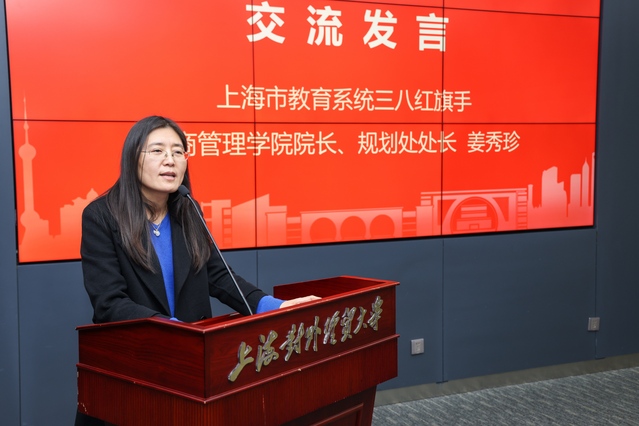 会上,上海市巾帼文明岗获奖单位统计与信息学院经济统计系教师代表李佩瑾、上海市教育系统三八红旗手工商管理学院院长、规划处处长姜秀珍分别作了交流发言。