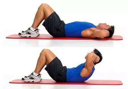 仰卧,双腿正常弯曲,双手半握拳放在耳朵两侧。让腰部发力,上身径直起来,然后缓慢下降使身体复位。