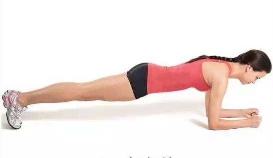 肘关节弯曲让前臂紧贴地面,同时手肘和手掌都放平在地面,手肘在肩膀的正下方;保持肩膀和肘关节垂直于地面,双脚踩地,允许脚趾弯曲,让躯干伸直,保持头部、肩部、背部、跨部和踝部保持在同一水平面上,并保持动作。