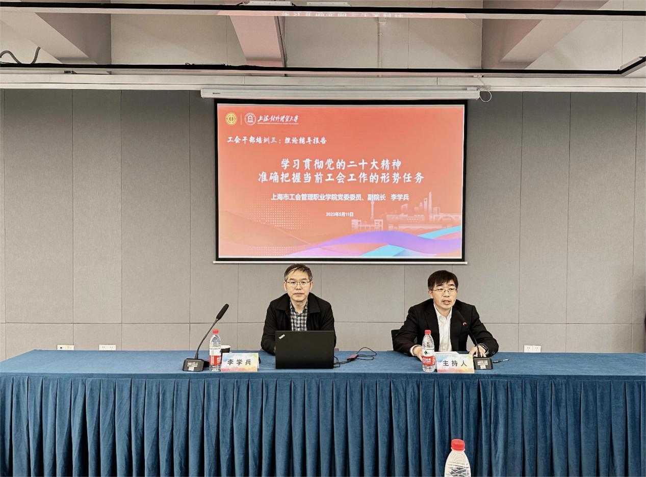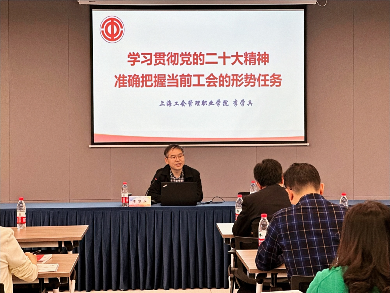 为进一步提高新时代工会干部服务大局、服务群众的能力和水平,切实加强我校工会干部队伍自身建设,5月11日校工会在松江校区乐群楼302工会活动室举行工会干部系列培训之专题理论辅导报告,邀请上海工会管理职业学院党委委员、副院长李学兵作主题为《学习贯彻党的二十大精神 准确把握当前工会工作的形势任务》的专题辅导报告。报告会由校工会常务副主席唐旭生主持。