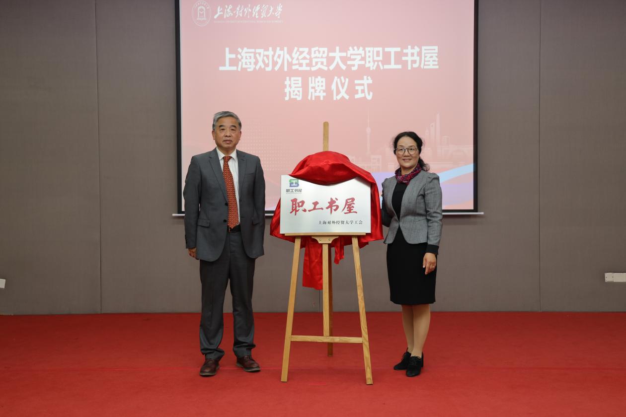 首先,举行了上海对外经贸大学职工书屋揭牌仪式,由上海市教育工会副主席陶文捷、上海对外经贸大学妇工委主任、工会副主席彭清清共同为上海对外经贸大学职工书屋揭牌。唐旭生介绍了职工书屋建立的过程和意义,职工书屋的建立主要目的是为了推动我校教职工文化的发展,激发教职工的创造活力,丰富教职工的精神文化生活。“职工书屋”依托教工之家建设,让书香伴随咖啡香,滋养教职工发展成长。职工书屋的筹建突出共享元素,鼓励教职工捐赠图书,共同助力职工书屋建设。职工书屋计划通过开展读书知识竞赛、读书会、读书演讲等活动,努力为教职工提供健康向上的文化产品,进一步引导广大教职工养成“爱读书、读好书”的良好习惯。