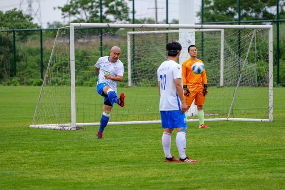 第二场上经贸大对战上师大,双方实力相当,上经贸大略占优势。从一开场,上经贸大就利用水战中球的运行轨迹飘忽不定的特点,安排了“3-1-3”攻击阵型,上师大门前一度风声鹤唳。比赛中段,3号宋磊明左路传中落点极佳,10号张鹏迎前俯冲头球攻门,上师大守门员下意识挡出皮球,另一侧插上的7号蔡萌推射空门入网。但裁判却判定蔡萌越位半个身位,进球无效!在没有VAR回看的友谊赛上,虽然此球充满争议,但上经贸大人都大度的接受了判罚。此后上经贸大继续围着上师大球门不断创造机会,无奈运气欠佳,比分一直没有领先。反而在临近结束前,上师大一次反击中平平无奇的射门,角度虽然刁钻但球速并不快,在正常比赛中守门员姜清拿到皮球当如反掌折枝一般。奈何,在雨后积水的场地上,姜清无法像以往一样灵活的移动,皮球从姜清舒展侧扑的腋下滑进了球门。如此的失球让上经贸大气势跌落至冰点,大家无心恋战,又被上师大反击打入2球,再次以0:3落败。