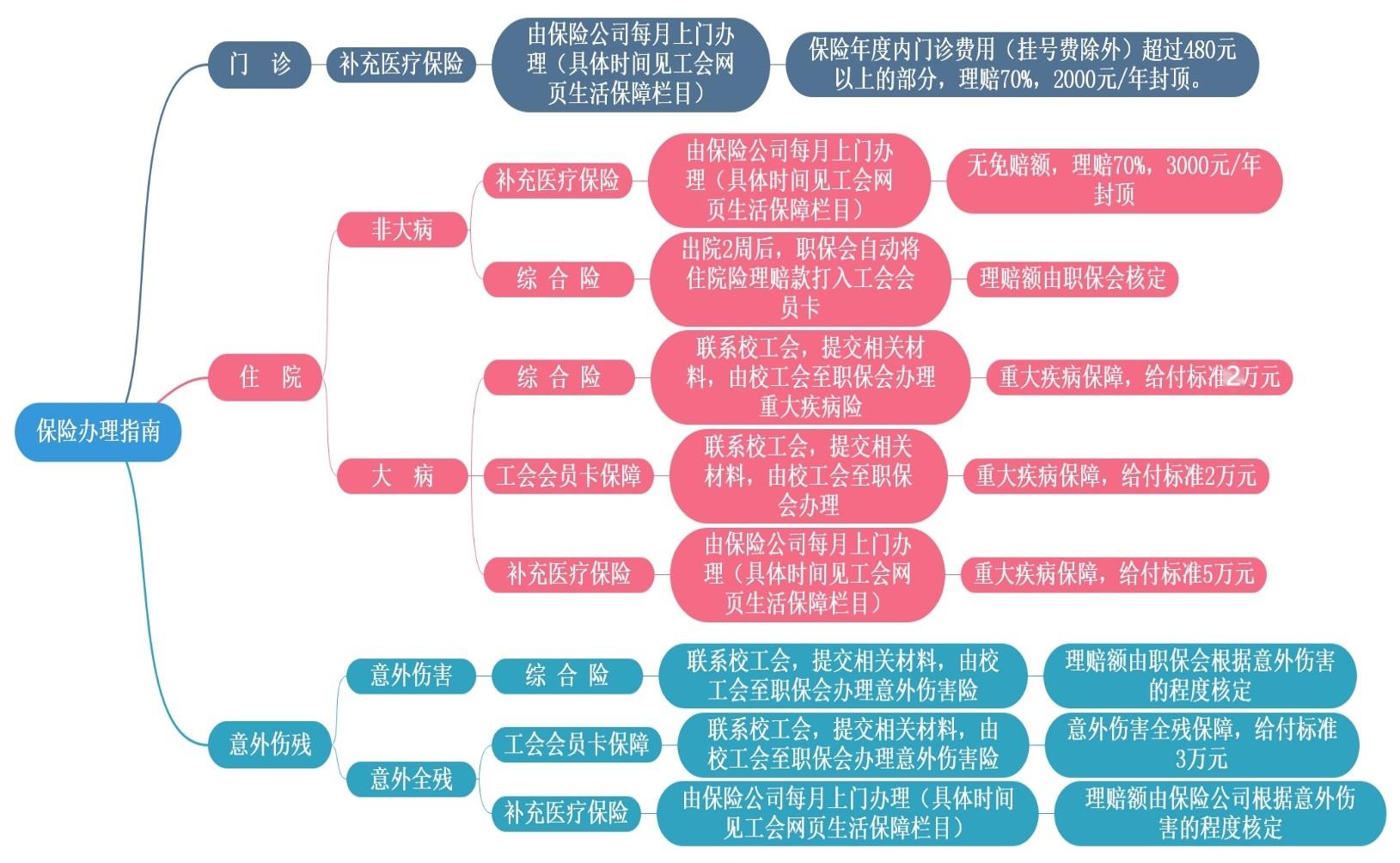 5.教职工在办理理赔时,因涉及个人隐私,请本人主动向受理保险的工作人员提出需要办理的保险内容,如不清楚可以咨询,以避免遗漏办理。
