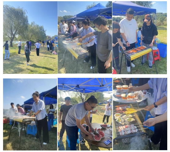 人员到齐后,学院工会组织老师们开展了一些趣味活动,大家参与性都很高。特别是中午组织大家一起动手做烧烤,更是把本次秋游活动气氛带到了高潮。每个烤炉前都围满了老师,有负责烧烤的,有负责分拣的,有负责摆放的。当然,更多的老师是在负责享受烤制好的美味,大家边烤边吃边比较看看哪个老师烤的专业地道,阵阵欢声笑语,把老师们身上的疲惫一扫而空。学院工会还为本次秋游活动精心准备了甜点和水果,配上烧烤,真是一顿难忘的美味大餐!