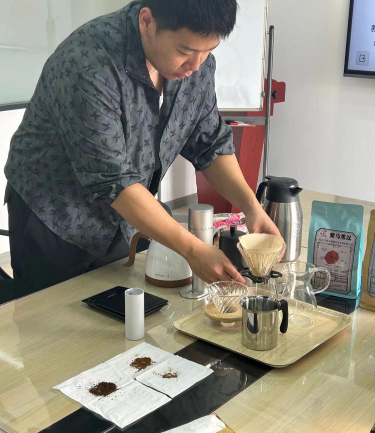 在讲解员的讲解与带领下,各位教职工还着手进行手冲咖啡的制作体验,通过研磨、注水、萃取等一系列流程进行了手冲制作并进行了品尝,切身体会到不同萃取方式对于咖啡风味的影响,体验到了咖啡文化的魅力与趣味。
