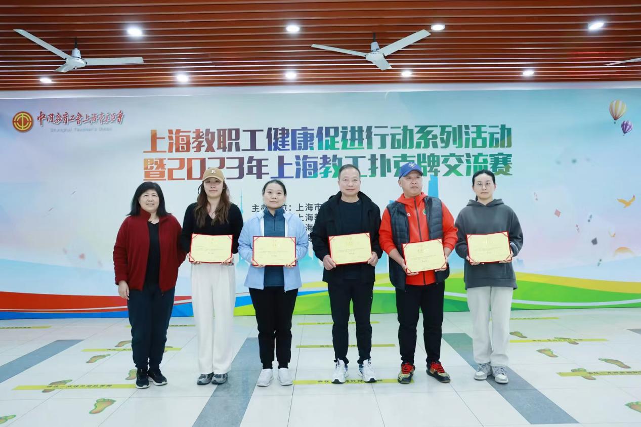 为进一步丰富教职工的业余生活,提高广大教职工对益智类扑克牌竞技的兴趣,陶冶情操,启迪智慧,同时加强各校教师间的沟通交流,增进教职工之间的友谊,2023年11月26日,校工会积极组织学校教职工参加了2023年上海教工扑克牌交流赛,比赛包括掼蛋和大怪路子两个项目。