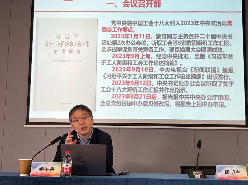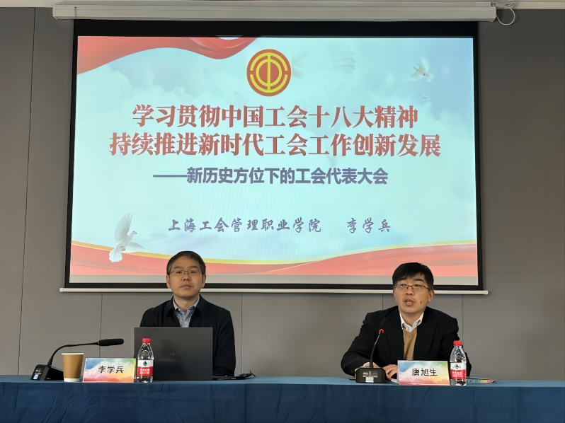 为深入贯彻落实中国工会十八大精神,推动新时代工会工作的创新发展,2023年12月21日,上海对外经贸大学校工会组织开展了工会主题讲座。本次活动由工会常务副主席唐旭生老师主持,邀请到上海市工会管理学院副院长李学兵老师前来主讲,共计有40余位工会专兼职干部参加。