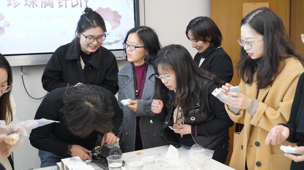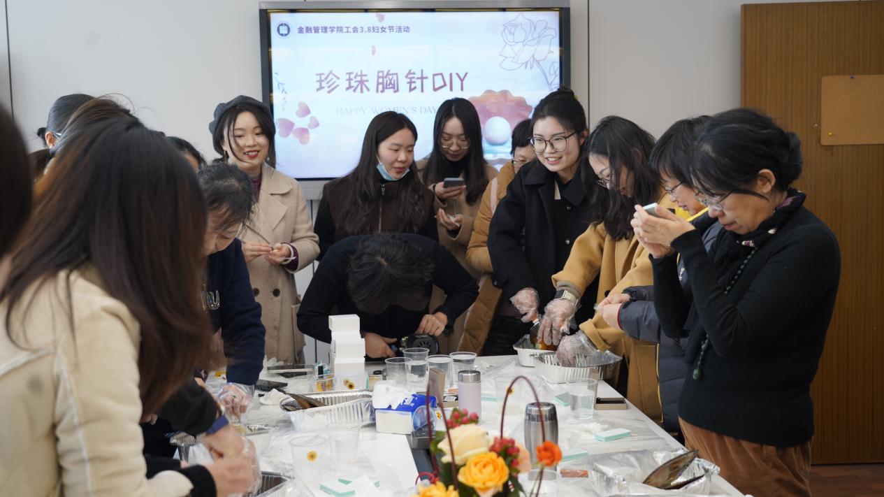 桃花开,燕归来,在这个暖意融融的春日,我们迎来了第114个“三八”国际劳动妇女节。为了表达对我院全体女教师的真挚祝福,丰富学院女教师的精神文化生活,充分发挥大家的动手能力和创造力,金融管理学院工会、女工委组织了“珍珠胸针DIY首饰活动“,学院女教师共计30余人参加。