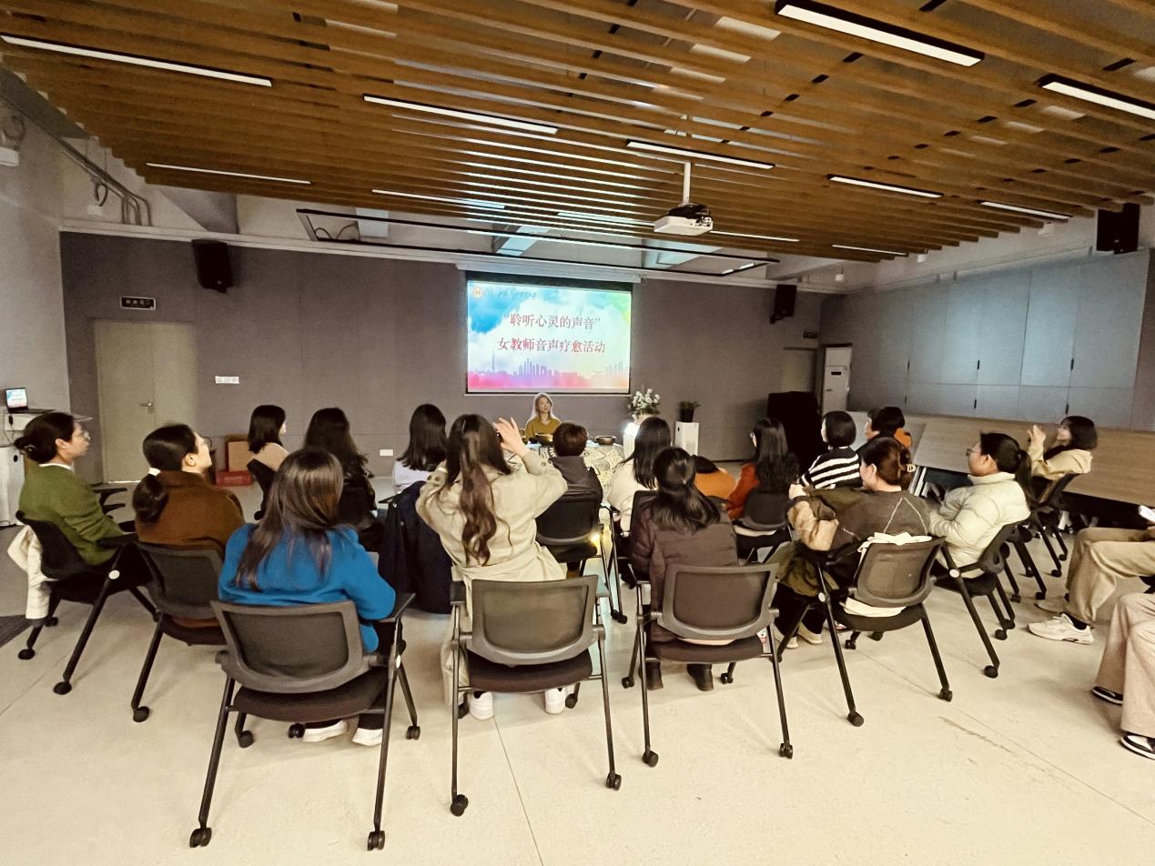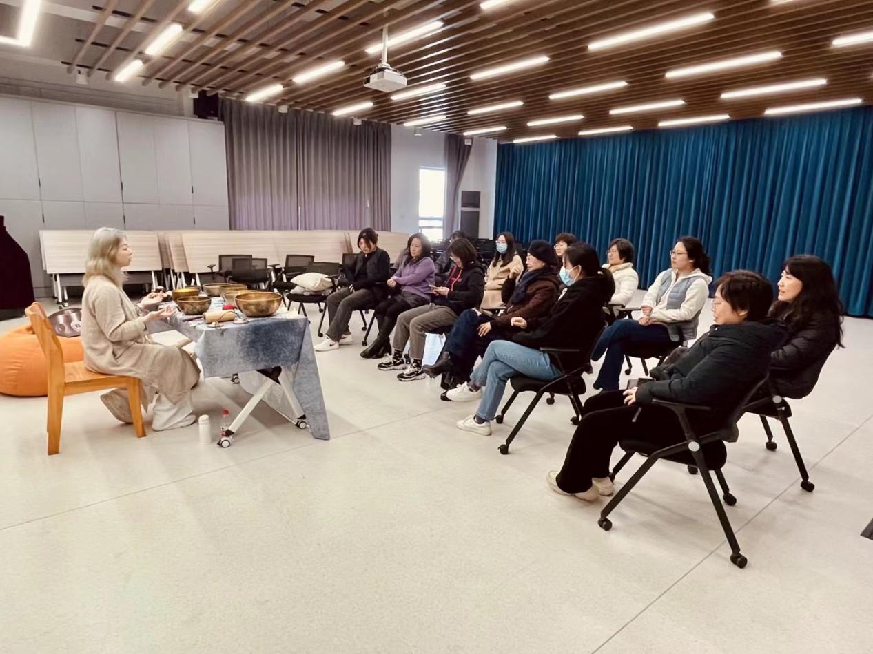 为提升女教职工的身心健康水平,校工会、妇工委于3月15日、3月19日在乐群楼302开展女神节系列活动之音声疗愈活动。本次活动以颂钵和手碟演奏为主要内容,为教职工们带来了一次沉浸式的身心放松疗愈体验,共计40余名女教职工参加了活动。