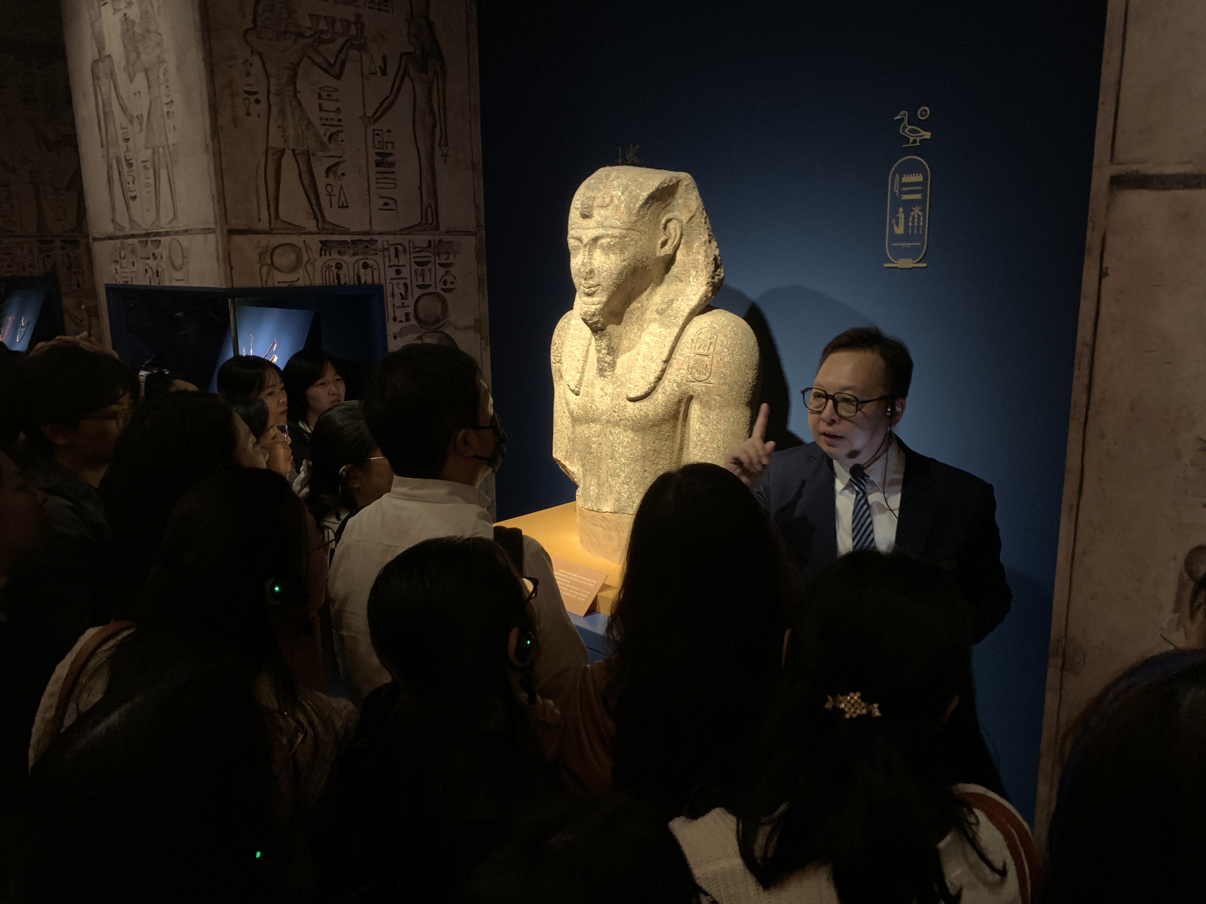 来到“图坦卡蒙的时代”,图坦卡蒙及其家族的历史与文化呈现在眼前。在讲解员引导下,老师们了解了“图坦卡蒙的时代”的历史背景和宗教改革,通过一系列相关文物,探索背后丰富的故事。图坦卡蒙巨型雕像,图坦卡蒙的父亲埃赫那吞巨像,他的母亲那芙蒂蒂雕像等,都让历史活了过来。