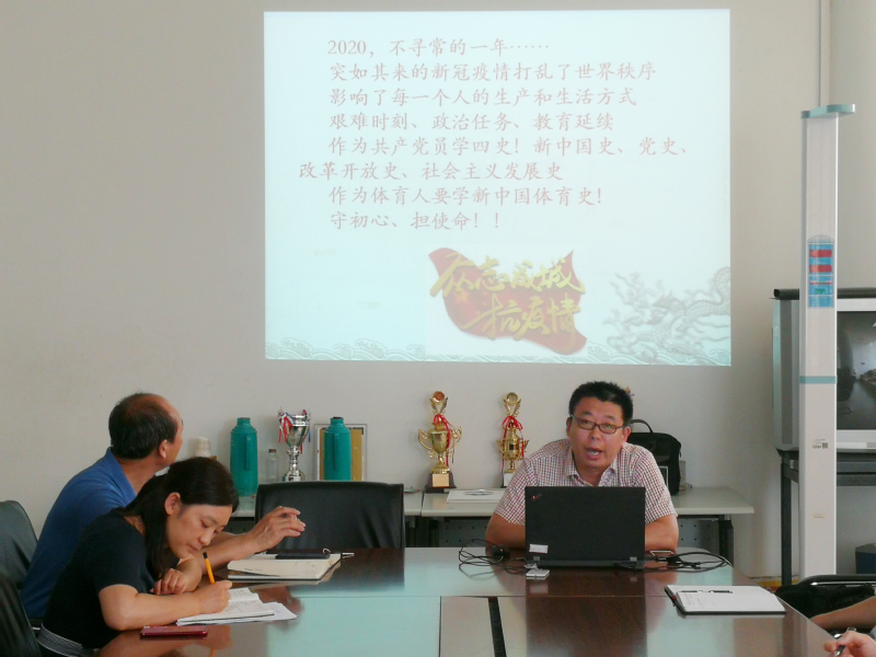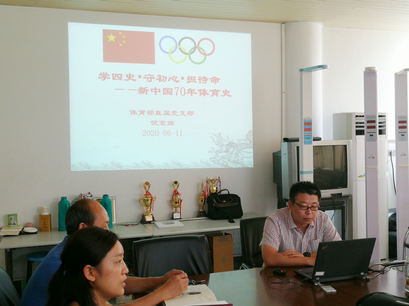 随后,体育部副教授倪京帅博士做了《学四史•守初心•担使命——新中国70年体育史》的讲座,倪博士从新中国70年体育发展的历程回顾、伟大成就、经验启示三个部分,为党员同志们做了深入浅出的讲解。
