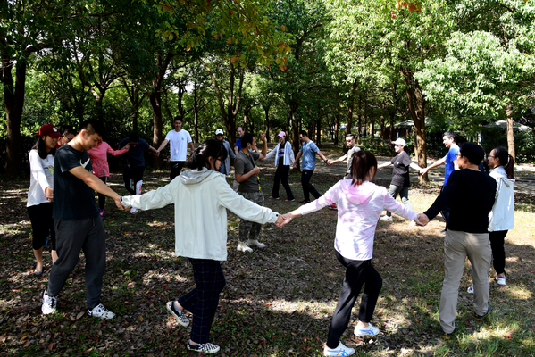 团建开始阶段,为了活跃气氛,教练首先带领队员们做了风吹雨打、桃花朵朵开、松鼠与大树,进化论四个破冰游戏。风吹雨打考验队员的身体柔韧性,集体协作能力;桃花朵朵开,桃花几朵开,桃花*朵开,通过这个游戏,考验队员的快速反应能力及组织能力;松鼠与大树则是通过一系列的口令,让队员在口令指挥下的团队快速配合能力;进化论则是通过从鸡蛋、鸡仔、凤凰、人类四个阶段的进化,要想实现完美蜕变,必须要经过痛苦的成长经历,通过破冰游戏增进老师们间的相互了解,让教师之间相互包容、相互信任,让队员之间相互尊重,从而拉近老师们之间的关系,让个体组成一个更加紧密的整体。