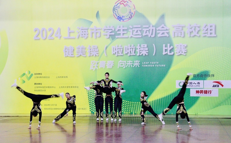 2024127日,上海市学生运动会高校组健美操(啦啦操)比赛在华东师范大学体育与健康学院篮球馆(闵行校区)圆满落幕。本次赛事由上海市教育委员会与上海体育局联合主办,上海市大学生体育协会与华东师范大学共同承办,上海市健美操协会协办,共有来自复旦大学、上海财经大学、上海对外经贸大学等34所高校59支队伍的近700名运动员齐聚闵行。上海对外经贸大学健美操队在决赛中发挥出色,高水平地展示了竞技风采,充分展现了上经贸大青年学子昂扬向上的精神风貌。