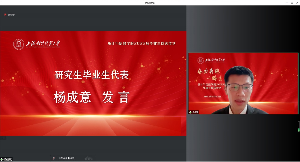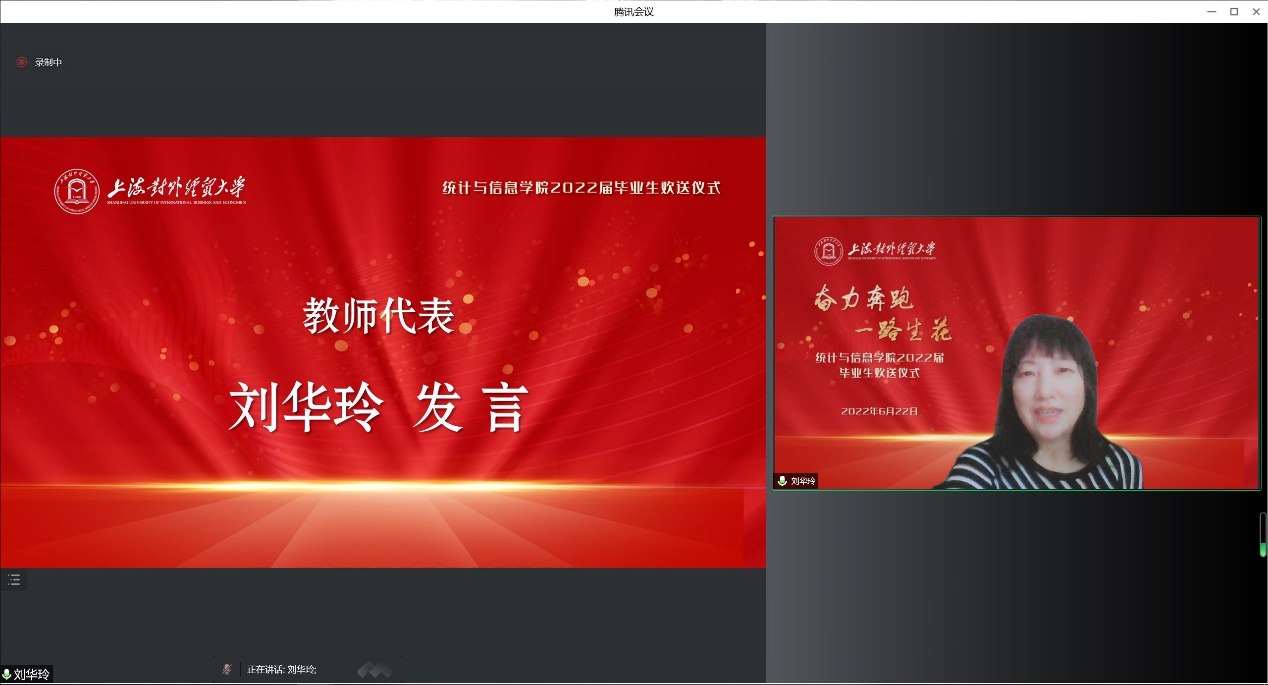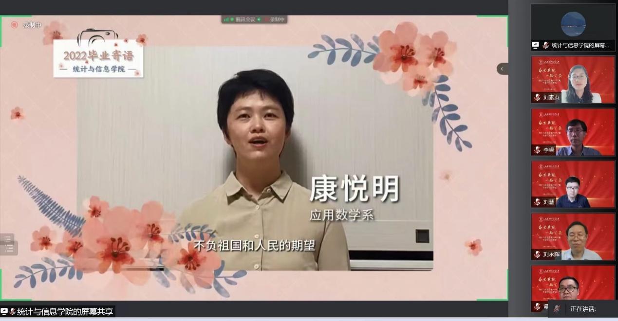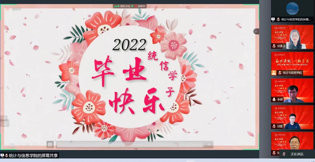 6月22日上午,统计与信息学院线上举行“奋力奔跑 一路生花”——2022届毕业生欢送仪式,学院领导班子全体成员、教师代表、校友代表相聚云端共同欢送2022届全体毕业生。欢送仪式由学院党委副书记李睿主持。