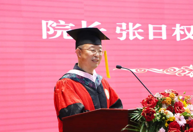 院长张日权向圆满完成学业、即将开启新征程的毕业生表示衷心的祝贺,向含辛茹苦培养同学们的父母表示真诚的祝福,向辛勤培育同学们的学院全体导师和教职员工表示诚挚的感谢。