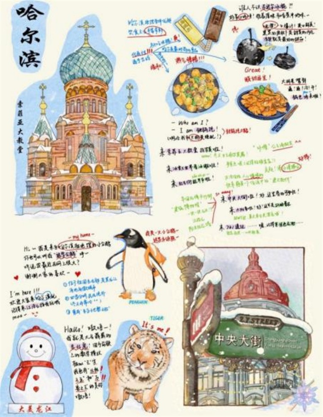 国际商务外语学院法语(商务方向)专业2022级本科生李佳颐介绍了自己的家乡哈尔滨。看着今年红遍全国的网红城市“尔滨”,她倍感自豪:“哈尔滨旅游文化资源丰富,除了年初火爆全网的中央大街、冰雪大世界、哈尔滨红肠外,还有极地公园、哈西红场、松花江雾凇美景等。‘尔滨’是座十分宜居的城市,这里的人们热情好客,待人友善,让人感到宾至如归,烟火气息浓厚,欢迎来哈尔滨,感受冰城的魔力与热情。”为此,李佳颐从饮食、旅游资源、历史文化等方面精心设计了一张推介海报,让人心驰神往。
