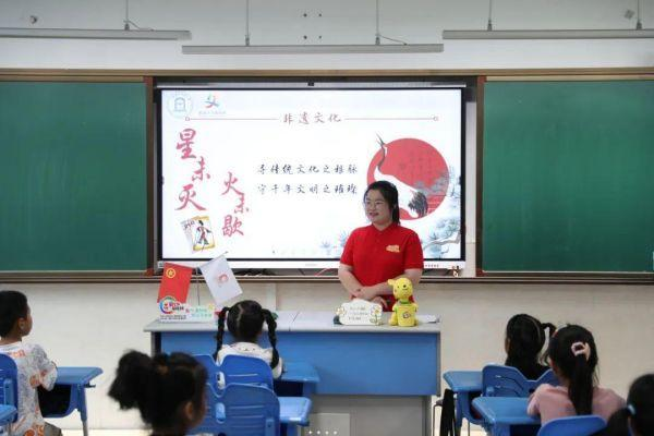 在“非遗”课程上,宣讲团讲师凡美琪同学通过一组组富含深意的数字、精彩的图片和视频,展示了松江非物质文化遗产的独特魅力。从传统的手工艺到民俗活动,从古老的顾绣到皮影戏,每一个非遗项目都让小朋友们感受到了传统文化的深厚底蕴和时代活力。
