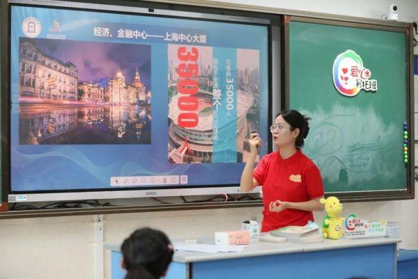 在数说上海地标课程上,宣讲队员杜瑞芯向小朋友们介绍了上海五大中心的建设情况。介绍金融中心代表性地标建筑——上海中心大厦,建筑面积578,000平方米,容纳35,000人,高度632米,中国第一、世界第三……通过一系列数据带领小朋友们了解了上海中心大厦的独特魅力。