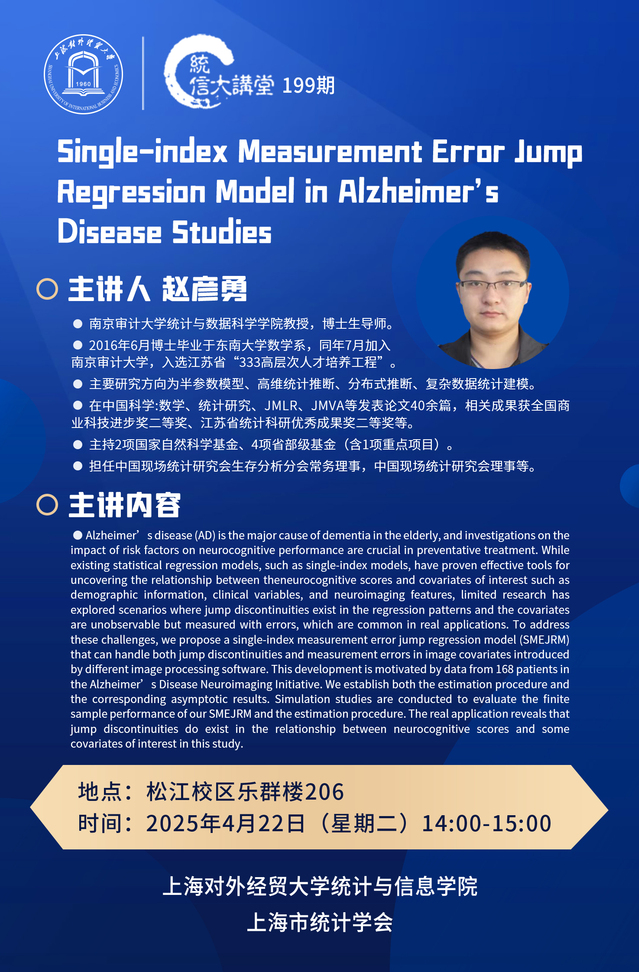 04.22 199 Single-index Measurement Error Jump Regression Model in Alzheimer's Disease Studies