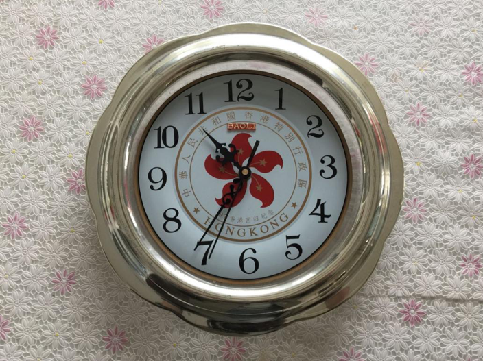 97年香港回归纪念钟,在我很小的时候,就一直在外公家里的墙上挂着。童年时代只知道这是一个时间表,而上面的文字却不知一二。某个春节我才算是真正去理解钟表上的文字,写着97年香港回归纪念钟。它似乎有了更深层次的寓意:以永续不停的时间见证中国巨龙盛世腾飞,献礼祖国。