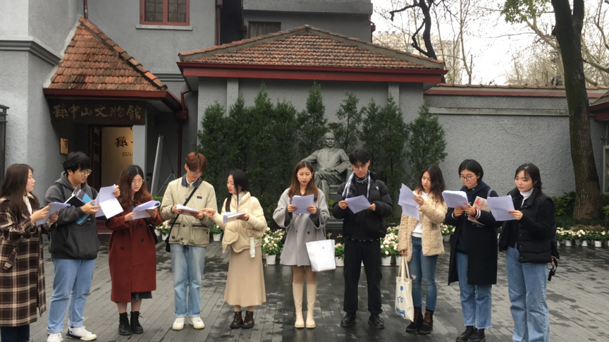 随后本支部与上海外国语大学研第十六支部共同参观了孙中山先生的故居。1918年6月,孙中山辞去海陆军大元帅职务后从广州回到上海,入住莫利爱路寓所(今香山路7号孙中山故居)。虽然遭受了多次挫折但孙中山毫不气馁,他在这里总结革命经验,继续探索革命新路。孙中山在这里先后完成了《孙文学说》、《实业计划》等重要著作;在这里孙中山会见了中国共产党人李大钊、林伯渠以及共产国际代表马林、越飞等,商谈国共合作,为“联俄 联共 扶助农工”三大政策的确立和第一次国共合作的实现奠定了基础。