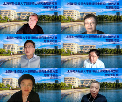5月22日晚,国际商务外语学院举行了2022级翻译硕士研究生培养方案专家论证会。会议邀请了全国翻译专业学位研究生教育指导委员会原主任委员黄友义、原秘书长穆雷、秘书长张爱玲、委员王晓辉、委员向明友及上海创凌翻译服务有限公司总经理杨颖波6名专家对培养方案进行了审议。上海对外经贸大学副校长于雪梅、研究生院院长黄建忠出席论证会,会议由国际商务外语学院院长温建平主持。国际商务外语学院党委书记刘根春、MTI中心主任吴朋、日语笔译方向负责人金镜玉、英语口译方向教师代表徐东风、蒋秀娟参加了论证会。