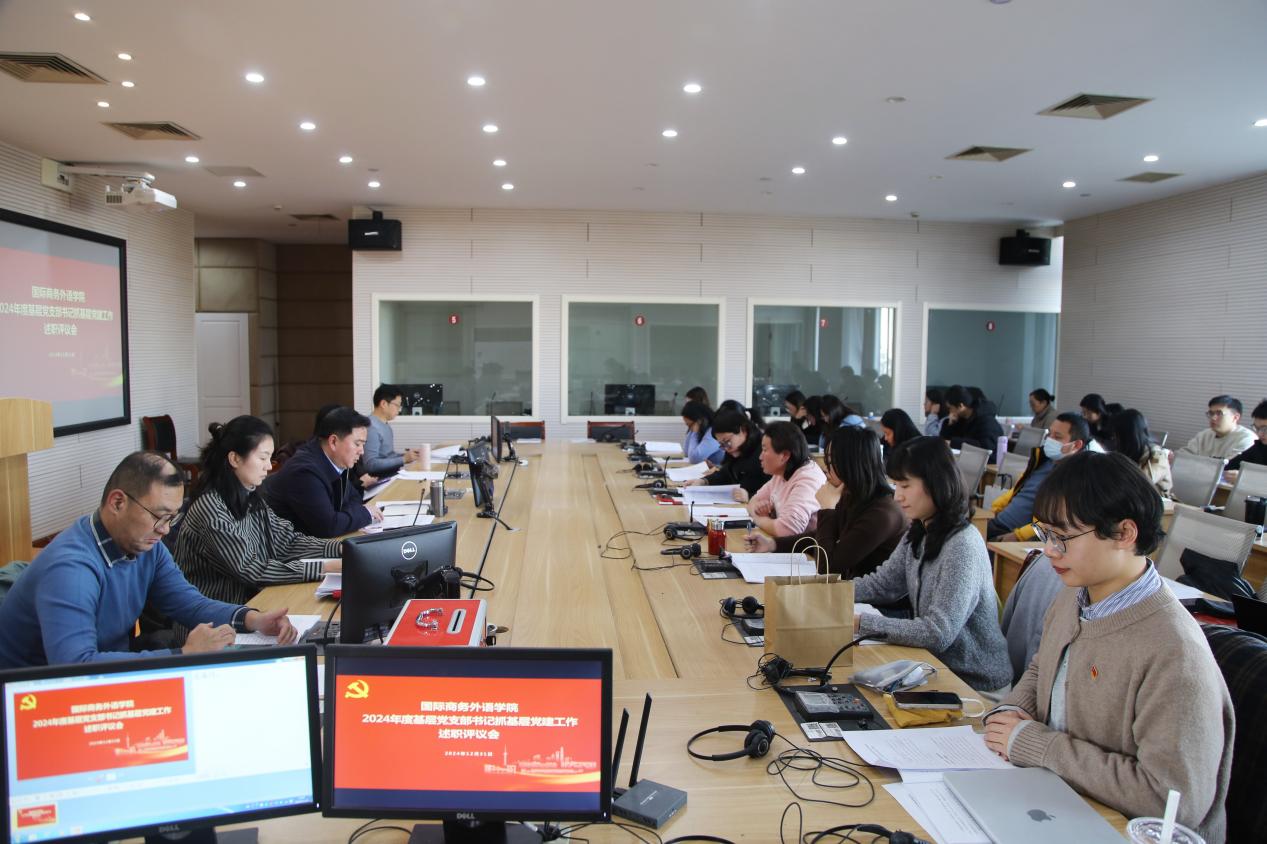 12月31日,国际商务外语学院在信息楼311组织召开2024年度党支部书记抓基层党建工作述职评议会。学院党政班子成员,全体党支部书记、支委出席会议。会议由学院党委副书记程祎瞳主持。