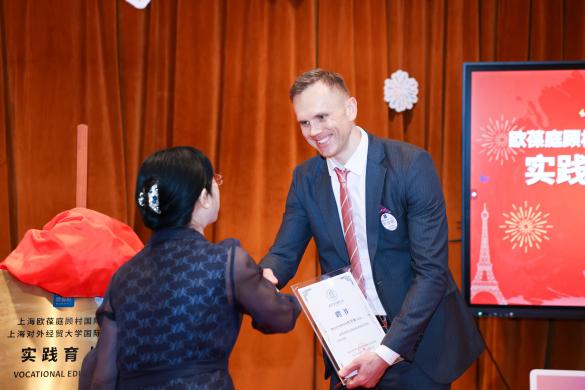 仪式上,王玉与欧葆庭中国区首席执行官CEO柯烨明(Benoit GARCIN)共同为实践育人基地揭牌,并聘请欧葆庭中国区首席执行官CEO柯烨明、中国区首席运营官COO邢珊珊、欧葆庭中国区品牌与市场总监察铭为学院企业导师,标志着校企合作正式开启。此次合作旨在充分发挥双方优势,将欧葆庭在康养领域的国际化经验与学院“外语+商务”的办学特色相结合,将经验丰富的企业导师团队引进来,通过专题讲座、职业生涯规划指导等形式,帮助学生深入了解养老行业趋势,提升跨文化职场竞争力。察铭表示将为我院师生开放一线岗位实习、案例研讨等优质资源,助力培养国际化复合型人才,打造产教融合新标杆。