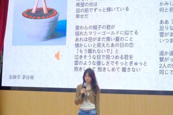 在日语演讲环节,选手们围绕“中日潮流文化”这一主题,结合自身经历和感悟,用流利的日语阐述观点。演讲内容丰富多样,充分展示了选手们对于日本文化以及中日文化交流发展方面的深刻思考,赢得了阵阵掌声。
