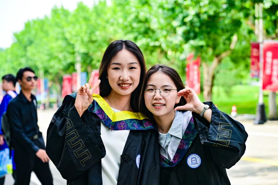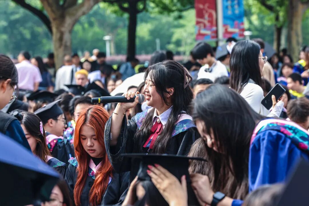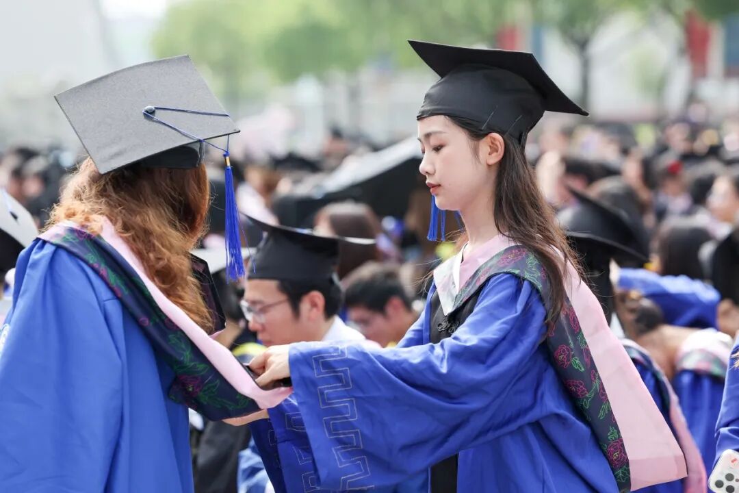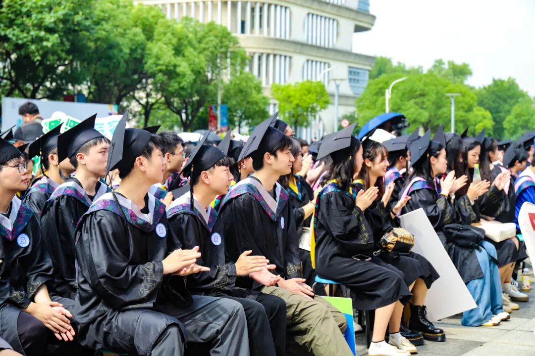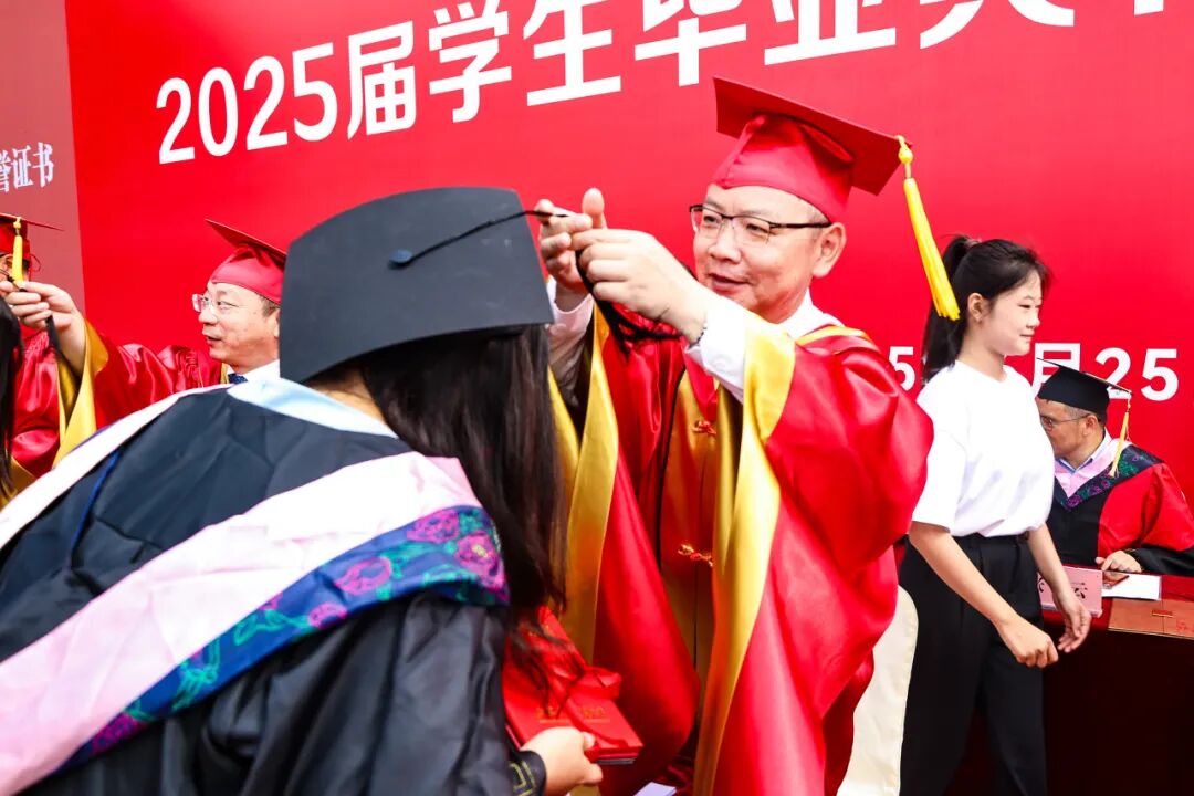 6月25日上午,学校2025届学生毕业典礼暨学位授予仪式在松江校区图文信息大楼南广场隆重举行。2025届全体毕业生与学校领导、老师和亲友们欢聚一堂、共襄盛会。