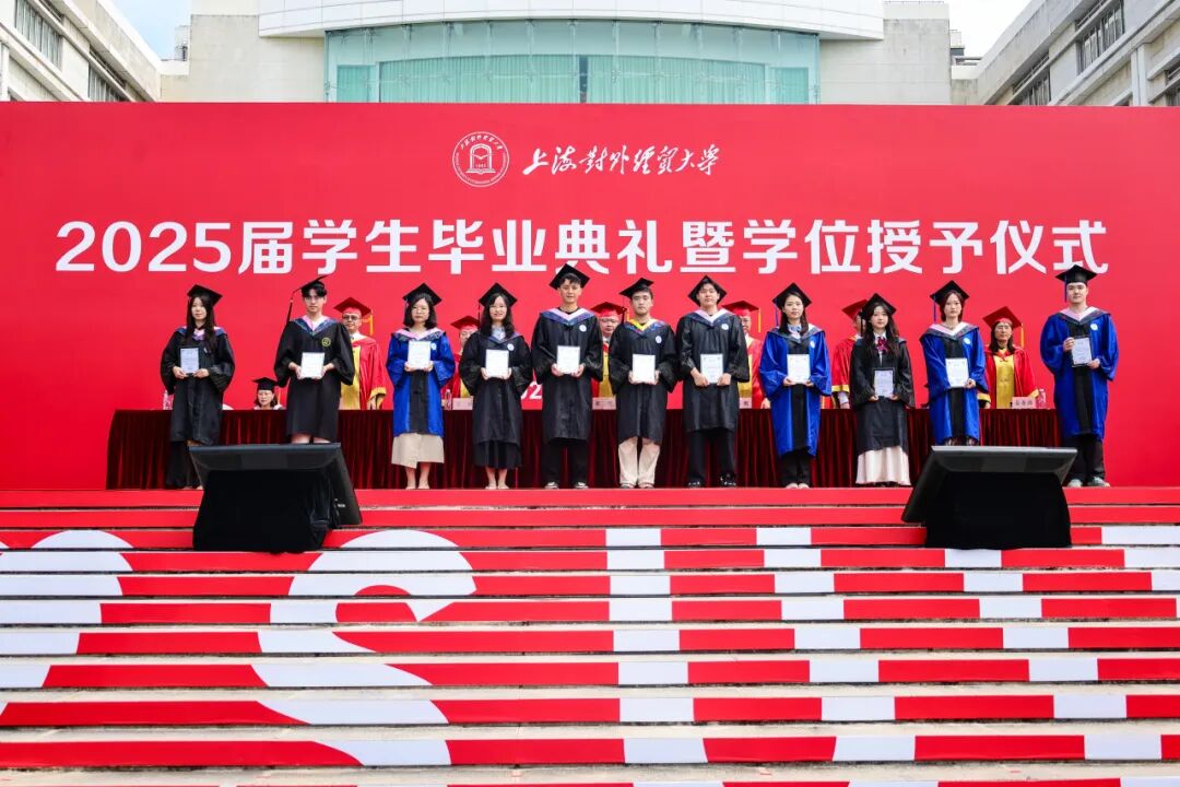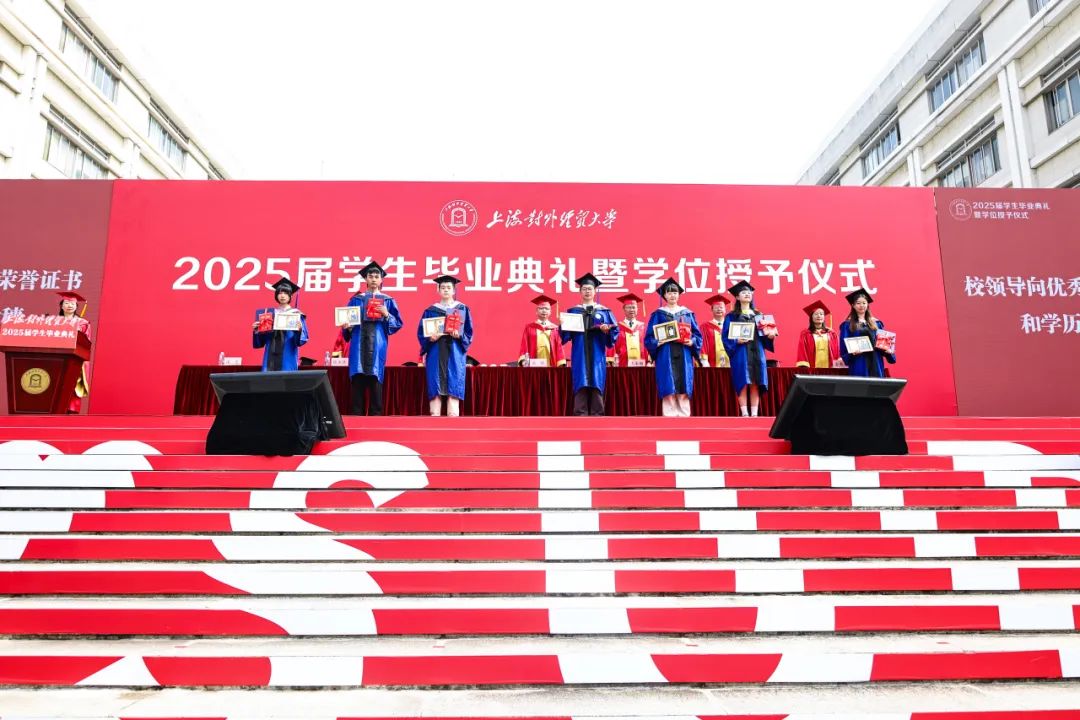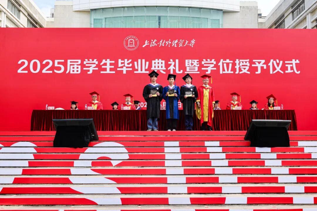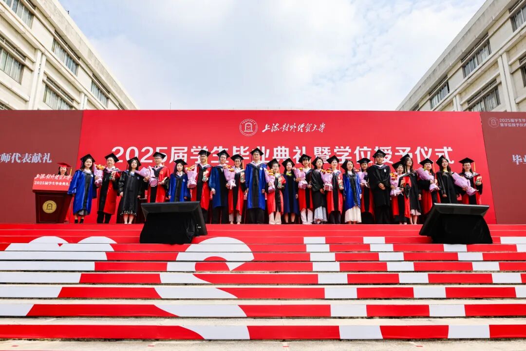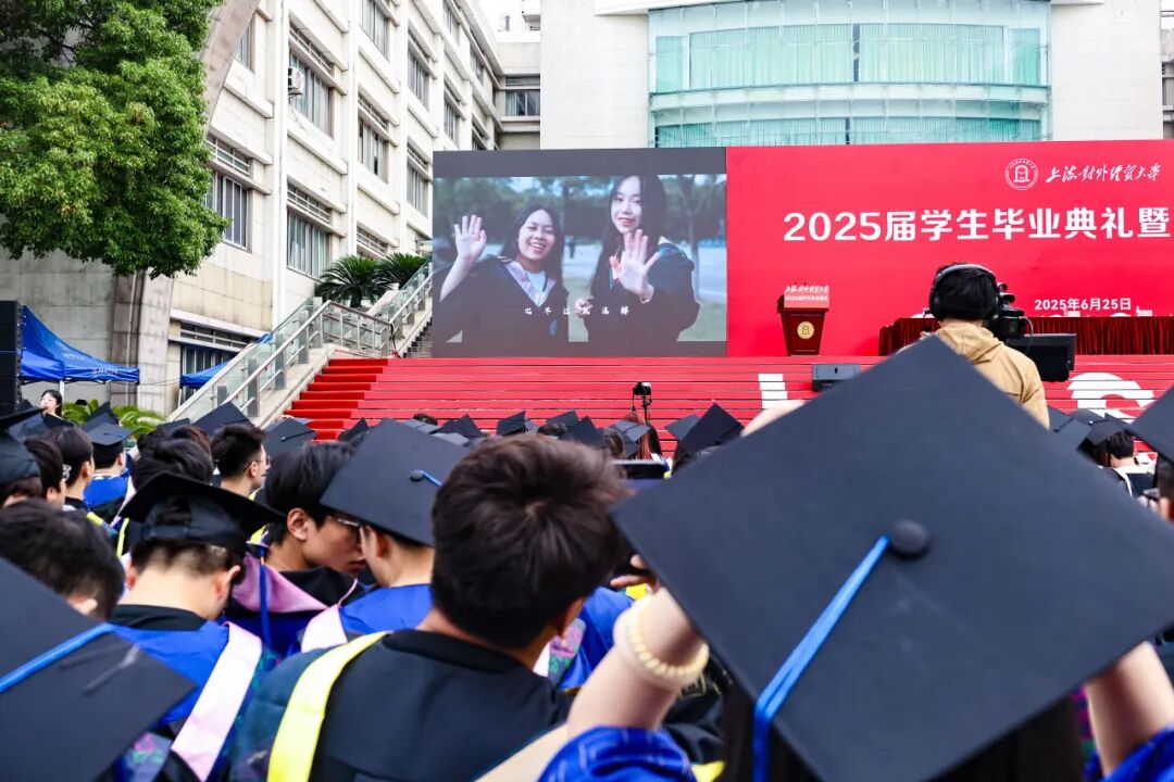 在雄壮的国歌声中,上海对外经贸大学2025届学生毕业典礼暨学位授予仪式拉开序幕。