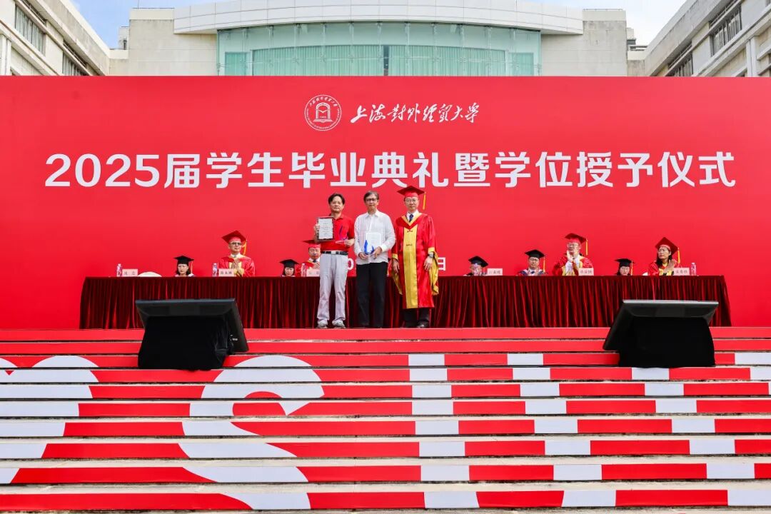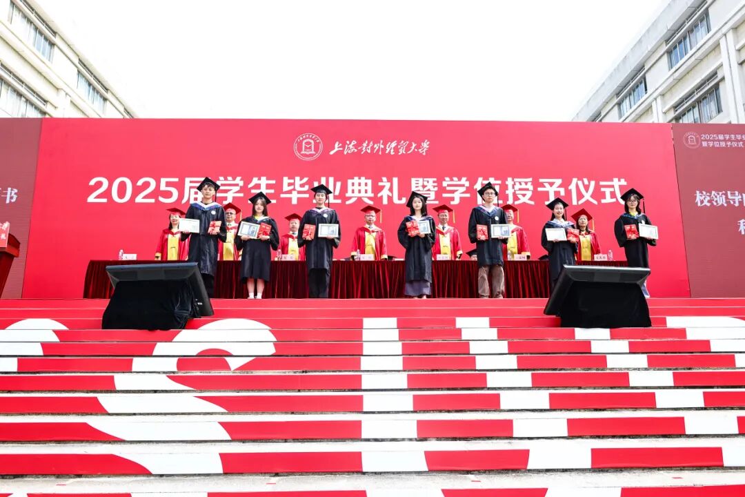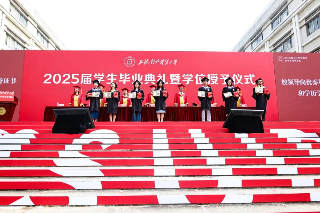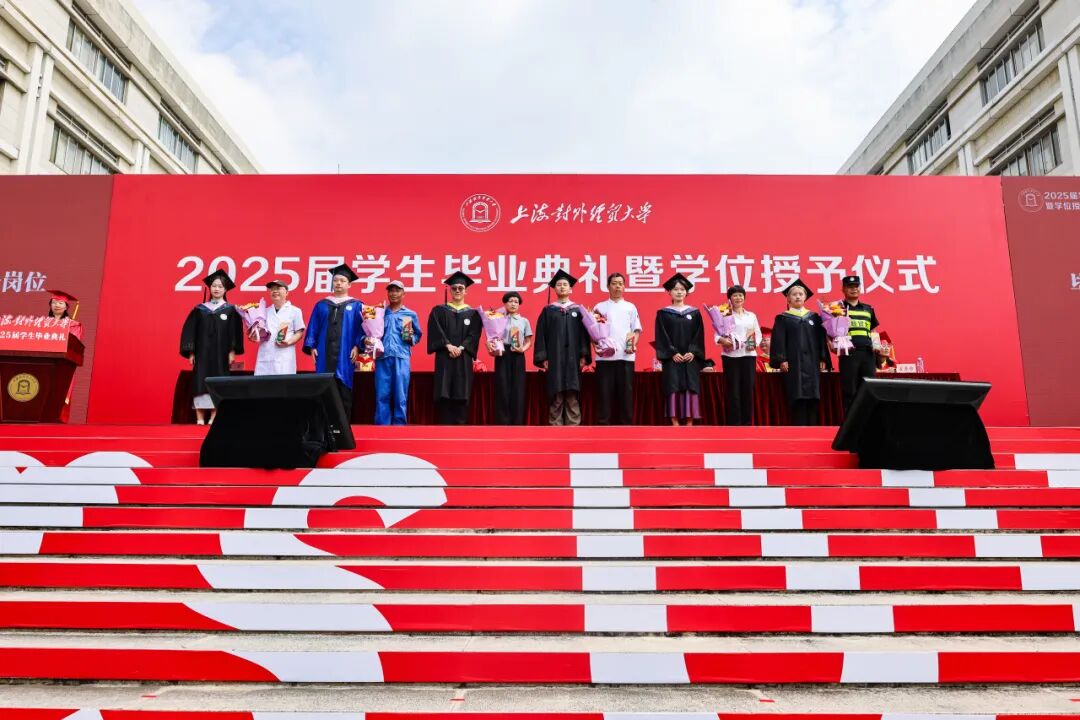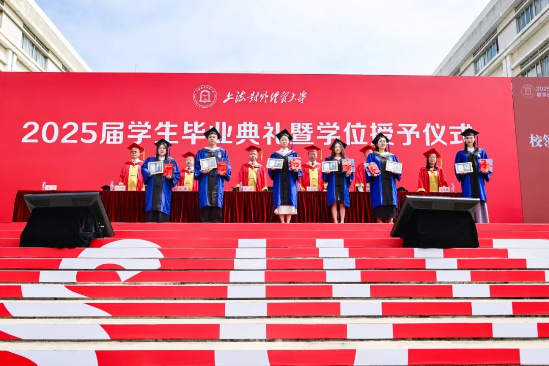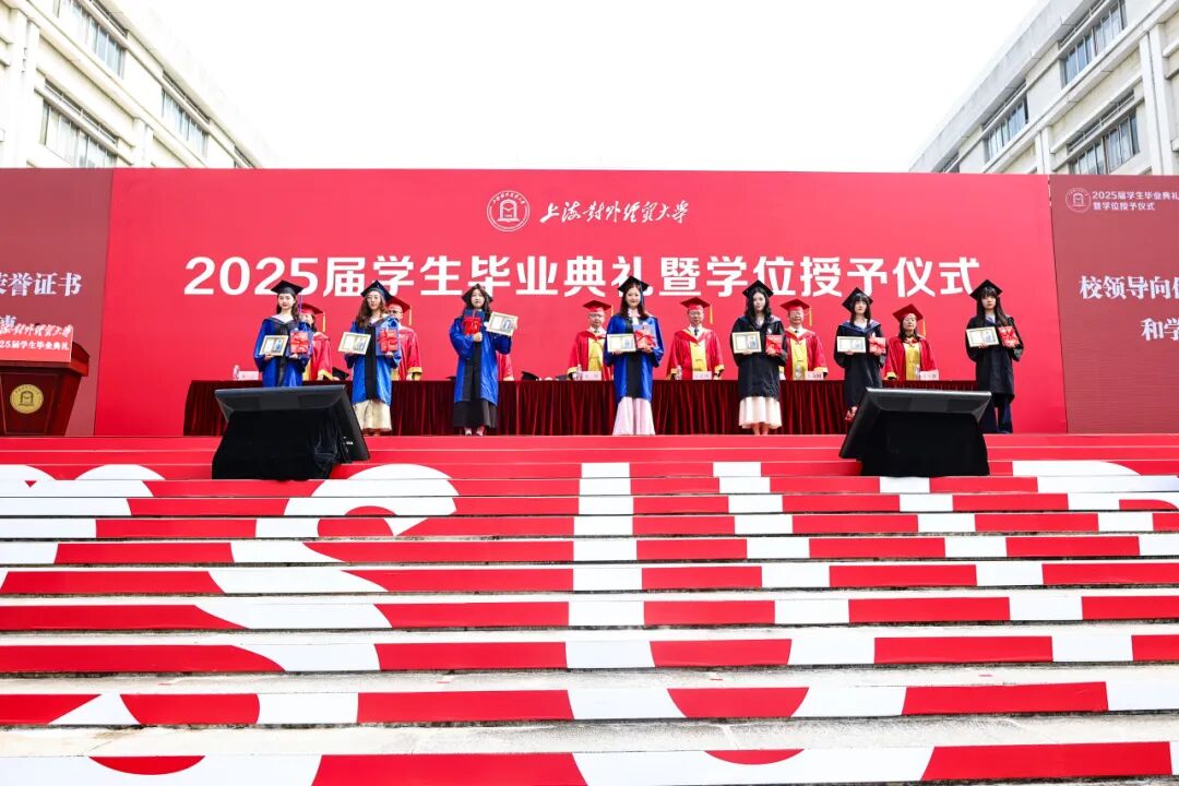 在雄壮的国歌声中,上海对外经贸大学2025届学生毕业典礼暨学位授予仪式拉开序幕。