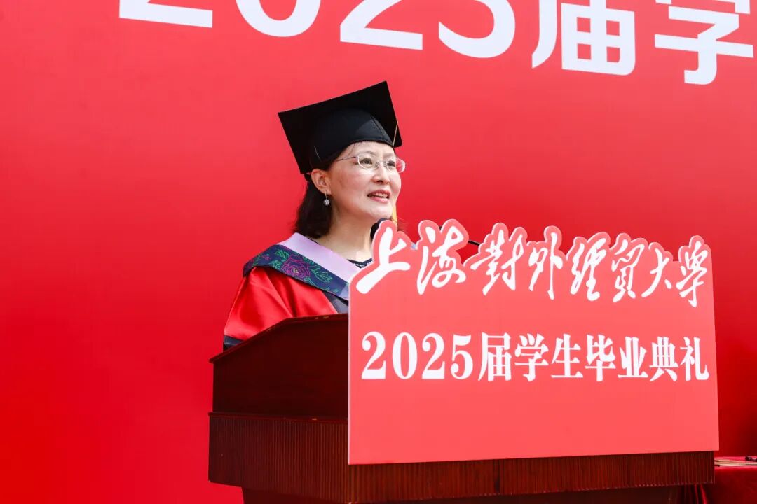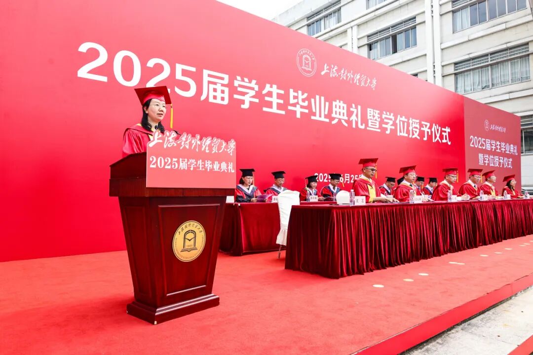 副校长姜秀珍宣读了《上海对外经贸大学2025届硕士学位、学士学位、荣誉学士学位授予名单》。