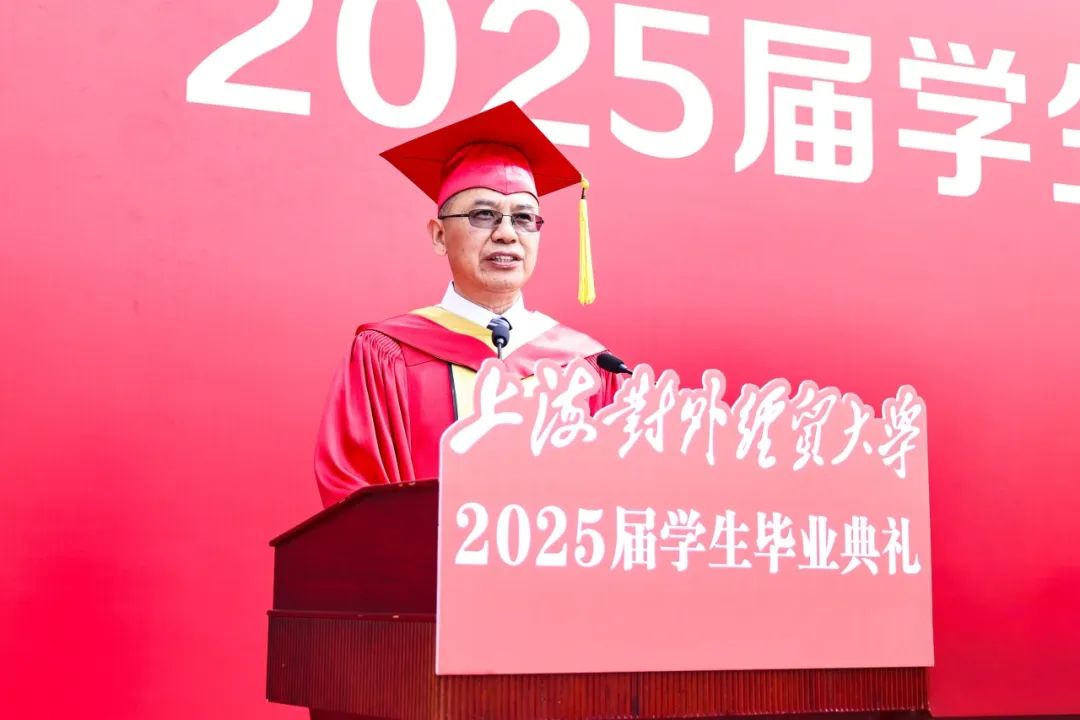 第三,在数字奔涌的浪潮中,锚定前行的时代坐标。这是一个科技变革加速与地缘政治动荡叠加的时代,也是一个大有可为的时代。要坚信,百年未有之大变局只是“磨刀石”,中华民族伟大复兴势不可当;要相信,强国建设、民族复兴不是空中楼阁,而在同学们未来的使命担当中;要相信,科技不是怪兽,人文之花也永远不会凋谢,科技赋能人文,人文则是科技的灵魂。希望毕业生们像海燕一样,在数字经济、数字贸易、数字金融、涉外法治、国际传播等专业领域的天空中翱翔。