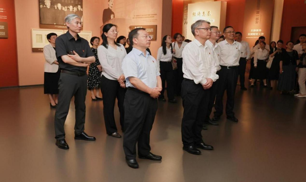 仪式结束后,师生党员在红色讲师的带领下参观学习了《伟大光辉的一生——陈云生平业绩陈列(1905-1995)》展览。通过一份份珍贵的历史文献、一幕幕详实的影像资料以及一件件承载峥嵘岁月的文物展品,生动勾勒了陈云同志在革命、建设和改革各个关键历史时期的卓越贡献。师生党员们驻足凝视、认真聆听,深刻感悟陈云同志一生忠诚于党的革命信念、深谋远虑的战略眼光、唯实从实的工作作风、为民造福的公仆情怀、淡泊名利的高尚品格。