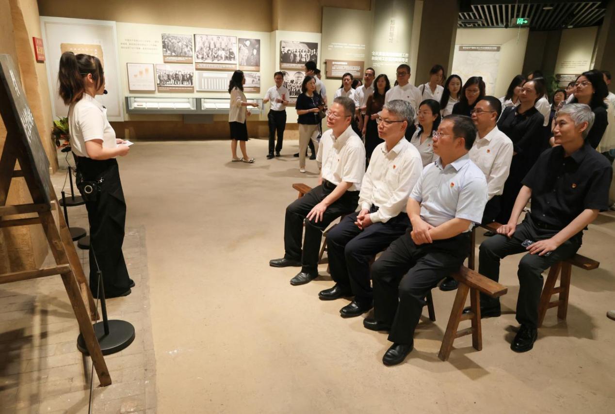 为庆祝中国共产党成立104周年,深入学习贯彻习近平总书记在纪念陈云同志诞辰120周年座谈会上的重要讲话精神,扎实推进深入贯彻中央八项规定精神学习教育,6月26日,上海对外经贸大学与陈云纪念馆联合举办“学思想、强作风、建新功”庆祝建党104周年主题活动暨师生党员同上一堂党课,校领导班子,各二级单位、部门党政负责同志,师生党员代表走进陈云纪念馆,开展“行走的党课”,共同探索深化馆校合作的新路径。