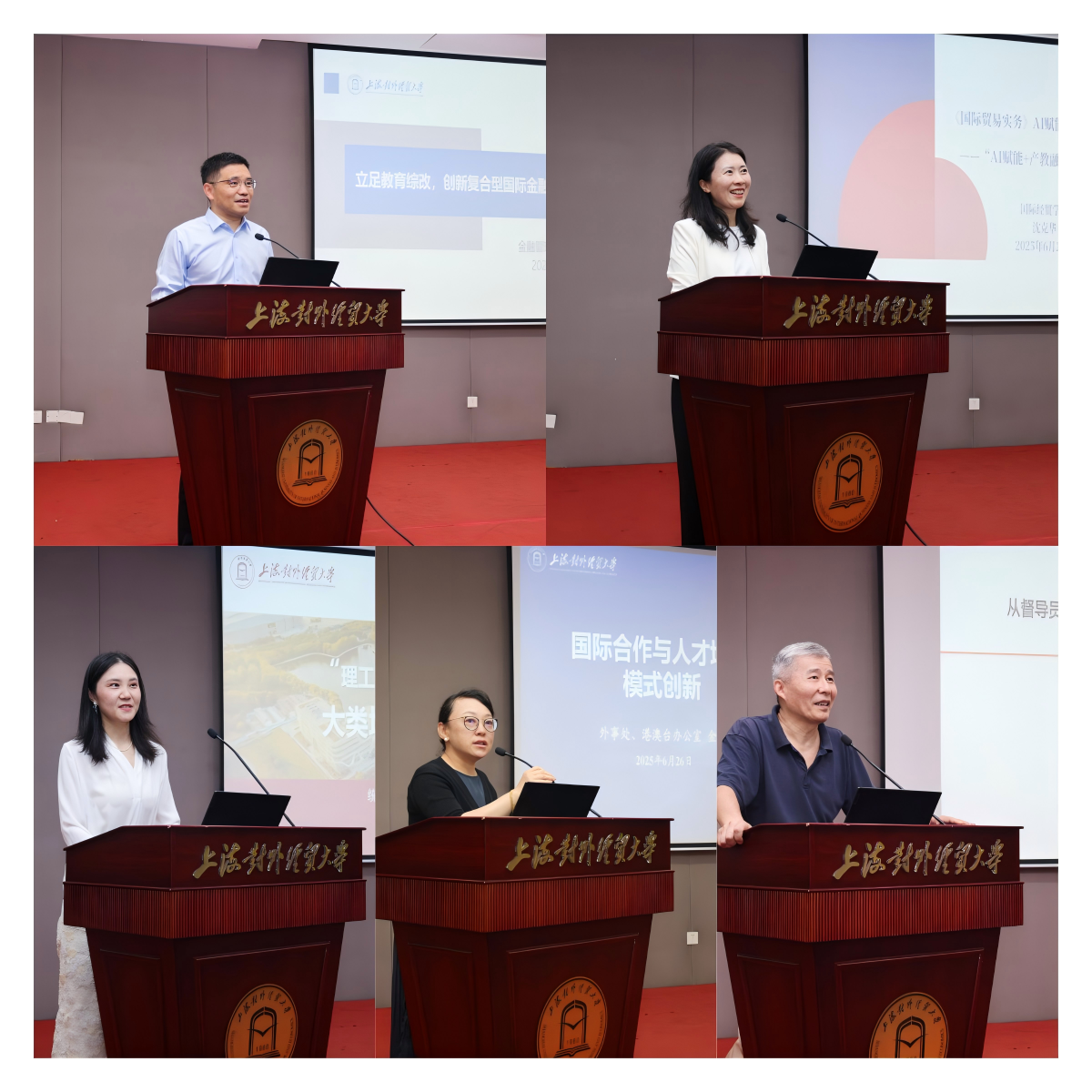 会上,金融管理学院院长张云、国际经贸学院副院长沈克华、统计与数据科学学院副院长李瑞囡、外事处处长金泉、教学督导员凌学岭分别围绕“立足教育综改,创新复合型国际金融人才培养模式”“《国际贸易实务》AI赋能教学实践与探索”“‘理工固本、数智铸魂’大类培养改革实践”“国际合作与人才培养模式创新”“从督导员的角度看教学”作主题交流。