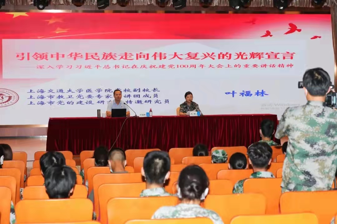 上海交通大学医学院党校副校长、上海市教卫党委专家宣讲组成员、上海市党的建设研究会特邀研究员叶福林为全体新生作深入学习习近平总书记“七一”重要讲话精神辅导报告,并围绕“入党动机”这一核心问题为新生开展入党导航。讲座采取线上线下相结合的方式进行,主会场设于图文信息大楼507报告厅,各分会场进行实况转播。讲座由党委研工部副部长乔檀主持。