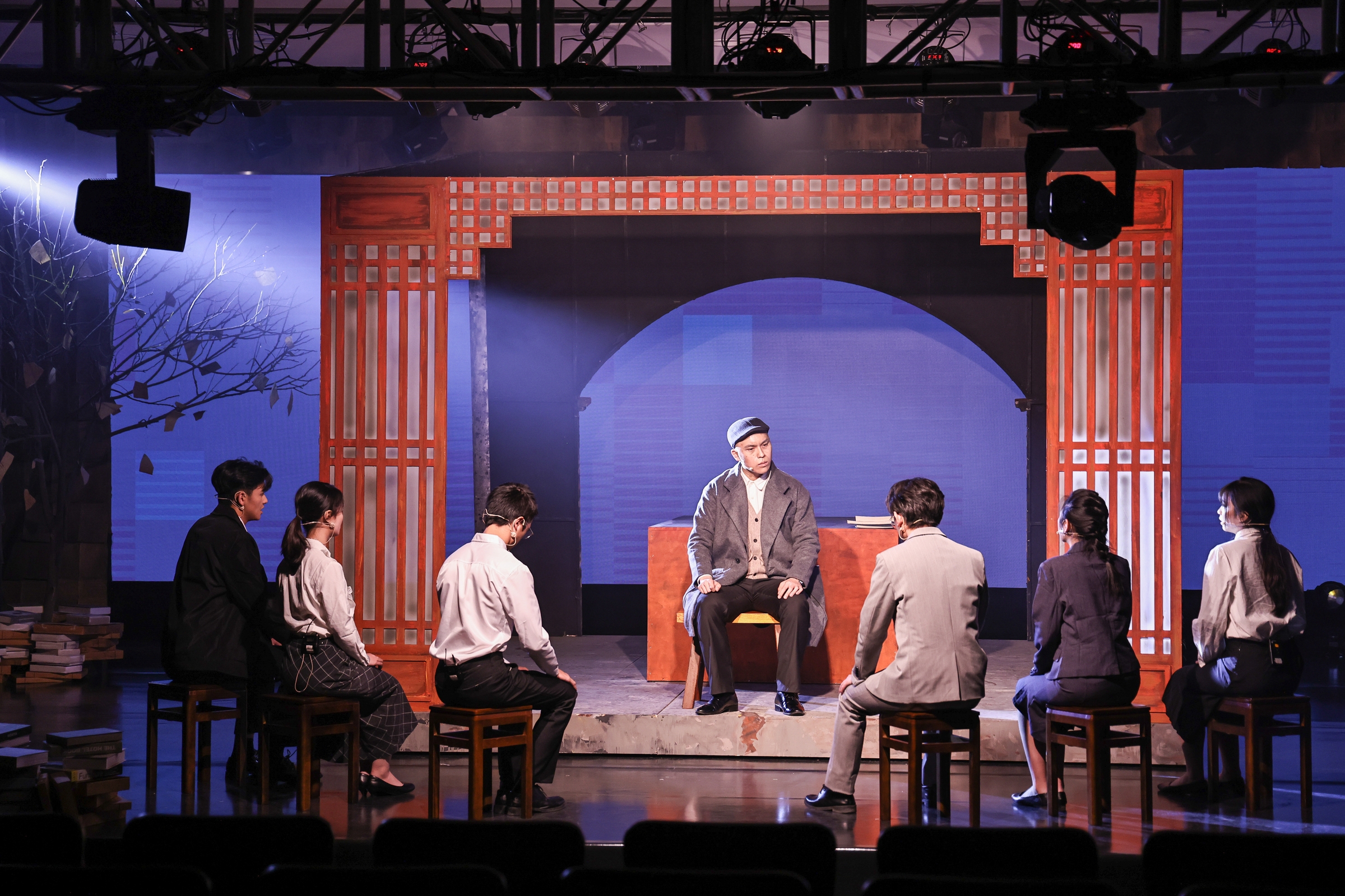 大师剧《汪尧田》由上海对外经贸大学出品,校党委宣传部、校团委和国际经贸学院主办;由上海戏剧学院著名编剧陆军教授担任艺术指导,李世涛副教授担任编剧,90”后新生代导演赵以执导,戏剧教育培训师王优雅担任制作人,主要演员由我校学生担任。自去年启动大师剧项目以来,创作团队潜心创作剧本,不仅查阅了大量汪尧田教授相关资料,采访了汪尧田教授家属、同事、学生、好友等20余人,还通过各种渠道搜集了音频视频等史料。在历经十余稿的修改后,大师剧《汪尧田》剧本终于定稿。在大师剧排演过程中,我校参演学生放弃暑假、中秋、国庆和双休日休息时间,克服疫情影响,认真研磨台词、体悟大师精神,努力提高形体动作和神态表情等演出技巧,在一遍又一遍的反复排练中,不断完善每个动作、每句台词,精益求精,力求最好。同时,在排演过程中,学生们也真切感受到了汪尧田教授坚定、睿智、执着、敦厚、温润的人格魅力,并把传承弘扬好大师精神的决心切实转化为演好大师剧的强大动力。