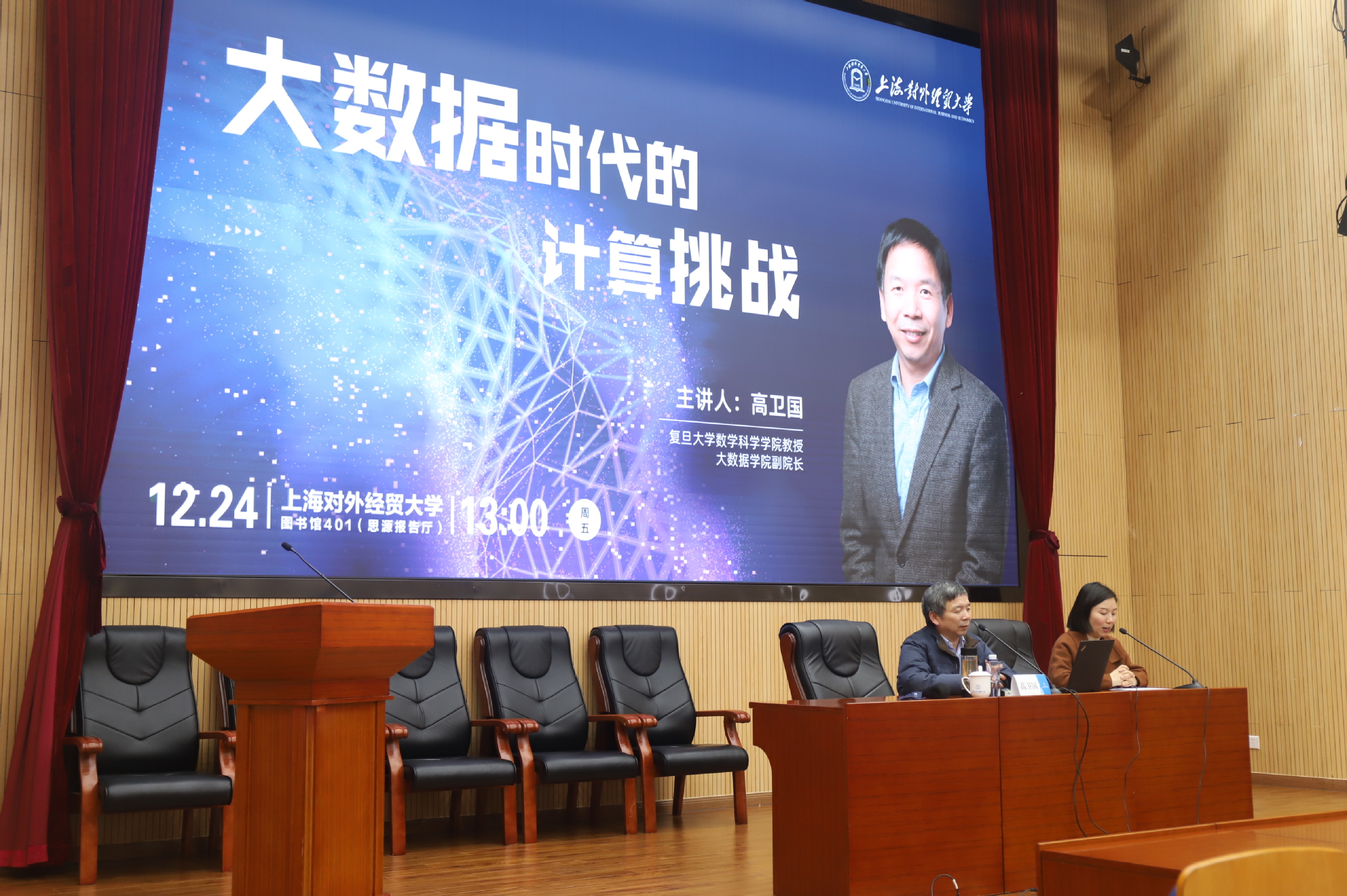 12月24日下午,学校2021年第八场博文讲堂在松江校区图书馆思源报告厅举行。本次活动由党委宣传部、文明办、学(研)工部、教务处和研究生院联合主办,邀请了复旦大学数学科学学院教授、大数据学院副院长高卫国作题为“大数据时代的计算挑战”的专题讲座。我校100余名师生在现场聆听了讲座。