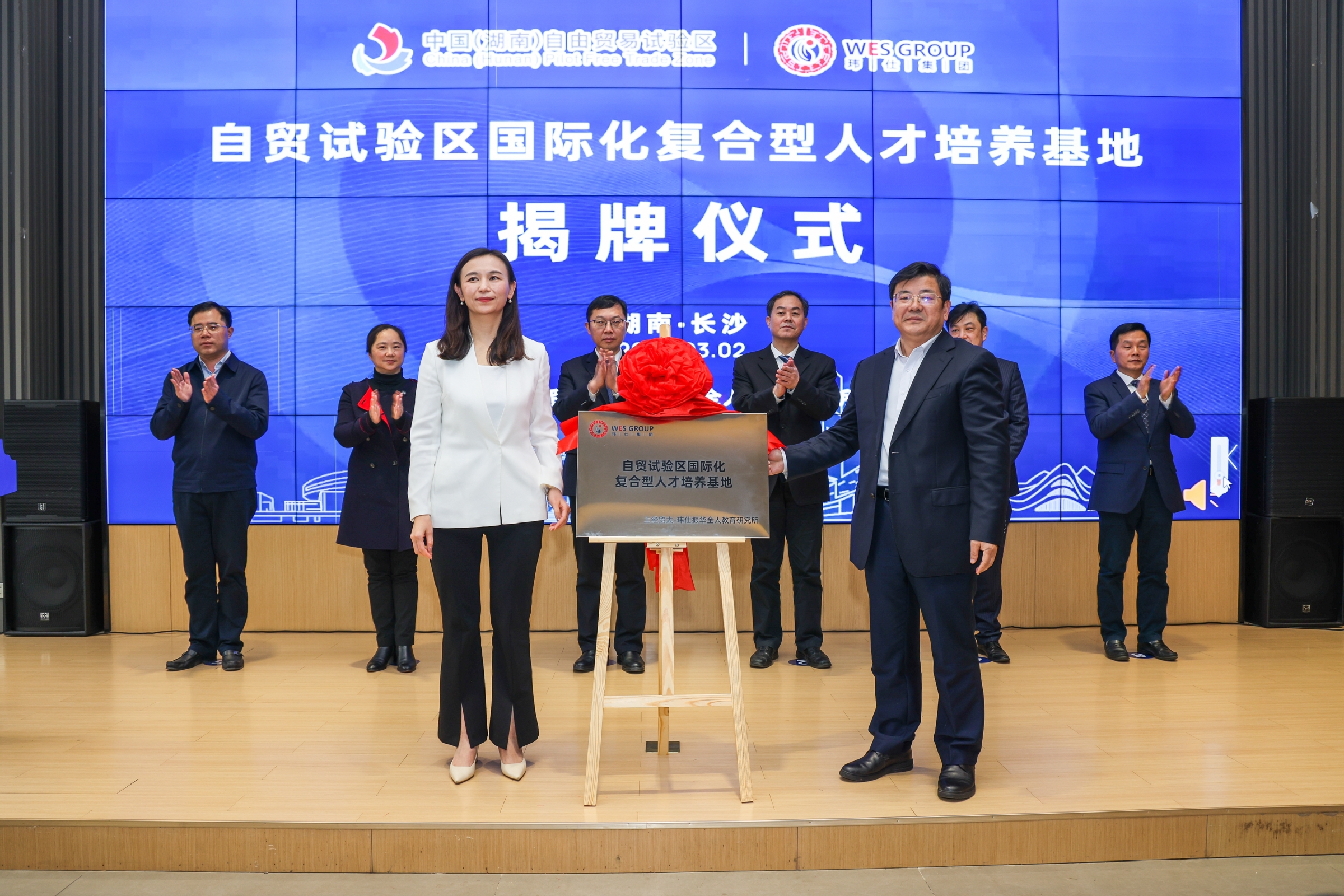 调研期间,学校一行还参访了中国(湖南)自由贸易试验区长沙片区(含长沙经济技术开发区)、湖南外贸职业学院、长沙玮希国际学校等单位,见证了“自贸试验区国际化复合型人才培养基地”揭牌仪式,湖南省自贸办与新加坡玮仕集团签约仪式,以及新加坡玮仕集团、湖南外贸职业学院、湖南智玮国际贸易服务有限公司签约仪式。湖南省商务厅一级巡视员、省商务服务中心主任毛七星,省自贸办专职副主任廖光辉,厅办公室主任、二级巡视员周章生,长沙经济技术开发区管委会主任张庆红,湖南自贸区长沙片区管委会常务副主任侯向宇,长沙经开区党工委委员、管委会副主任张湘鸿,湖南外贸职业学院党委书记唐瑾、校长陈波,新加坡玮仕集团董事长、上经贸大-玮仕振华全人教育研究所所长陈添等出席相关活动。