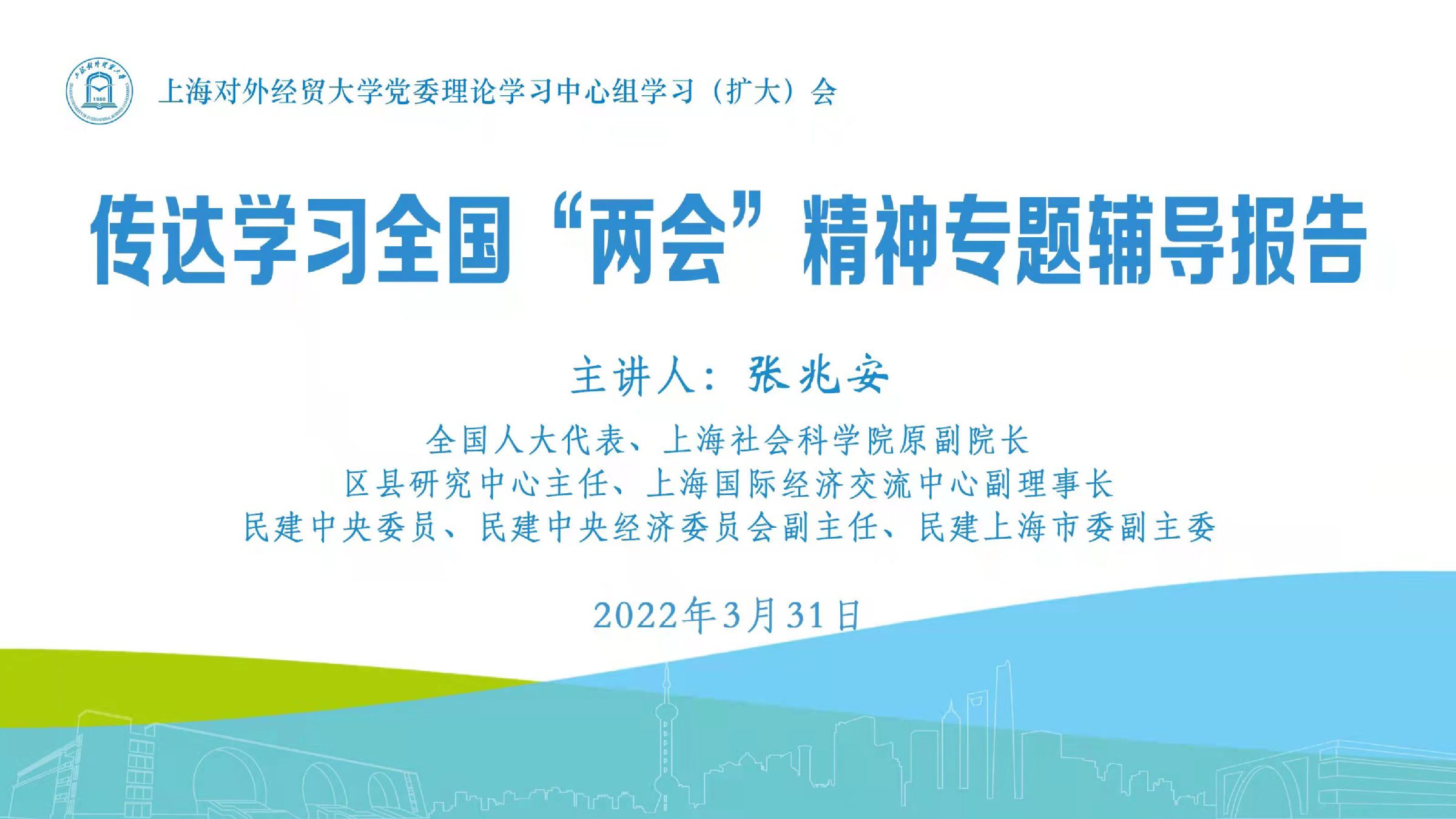 为了深入学习全国“两会”精神和习近平总书记重要讲话精神,3月31日下午,学校邀请全国人大代表、上海社会科学院原副院长,区县研究中心主任,上海国际经济交流中心副理事长,民建中央委员、民建中央经济委员会副主任、民建上海市委副主委张兆安研究员作专题辅导报告。会议以线上方式举行,学校党委理论学习中心组成员,全体中层干部,教职工党支部书记,系(专业)主任,各民主党派、统战团体负责人参加学习会。会议由校党委书记殷耀主持。