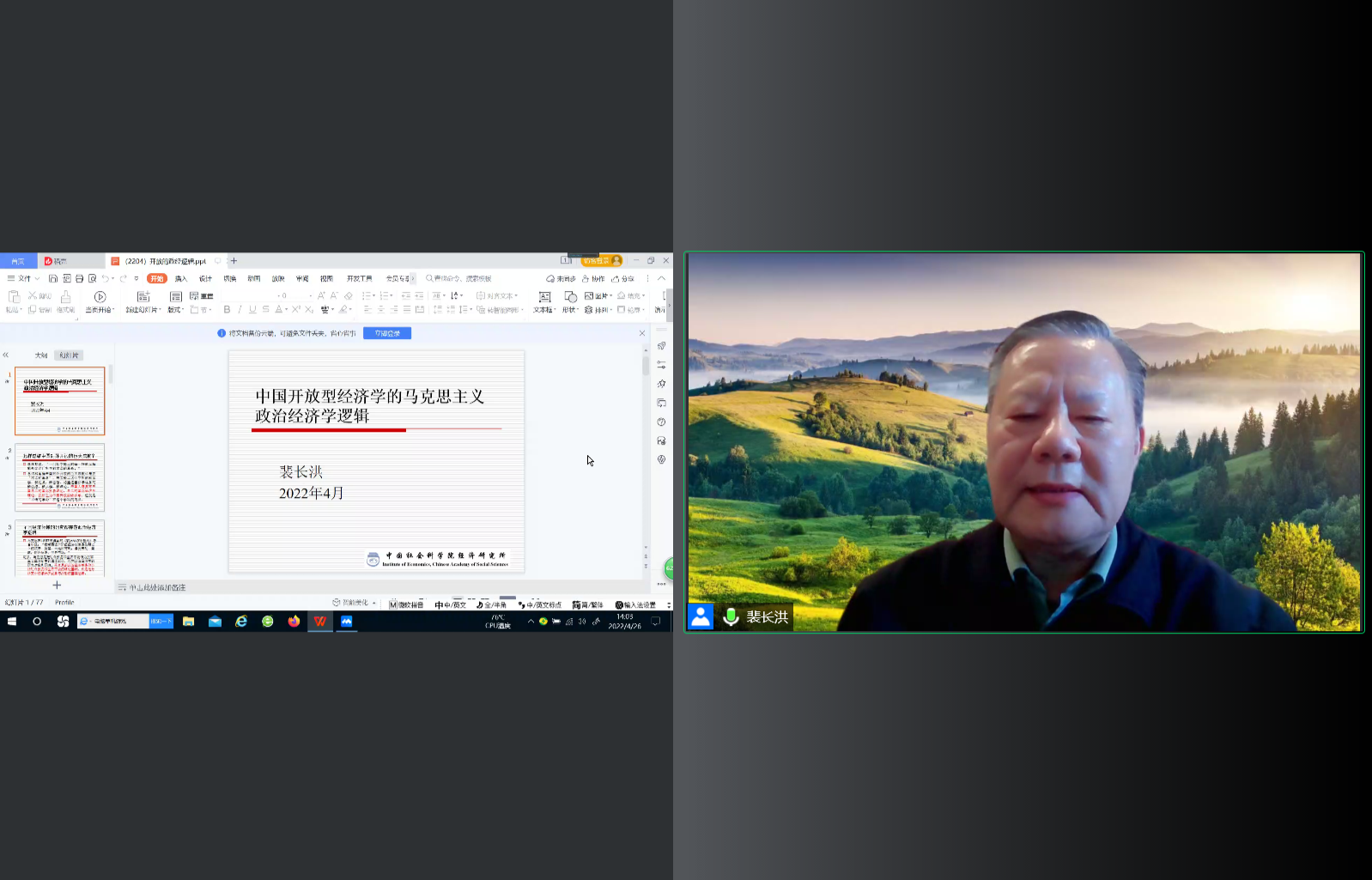 报告中,裴长洪研究员分别从马克思主义国际贸易与世界市场的基本原理、社会主义对外经贸实践的探索和认识、中国开放型经济提出的政治经济学命题与实践总结、习近平开放发展新理念蕴含的马克思主义政治经济学逻辑四个方面进行了详尽阐述。他围绕新时代怎样在哲学社会科学各个领域中推进马克思主义理论研究,以及面对百年未有之大变局如何在开放型经济领域构建马克思主义政治经济学中国化时代化学科体系等重大命题阐述了自己的独到见解和观点,就我国在推进开放型经济实践如何进行马克思主义政治经济学理论创新进行了深入分析。