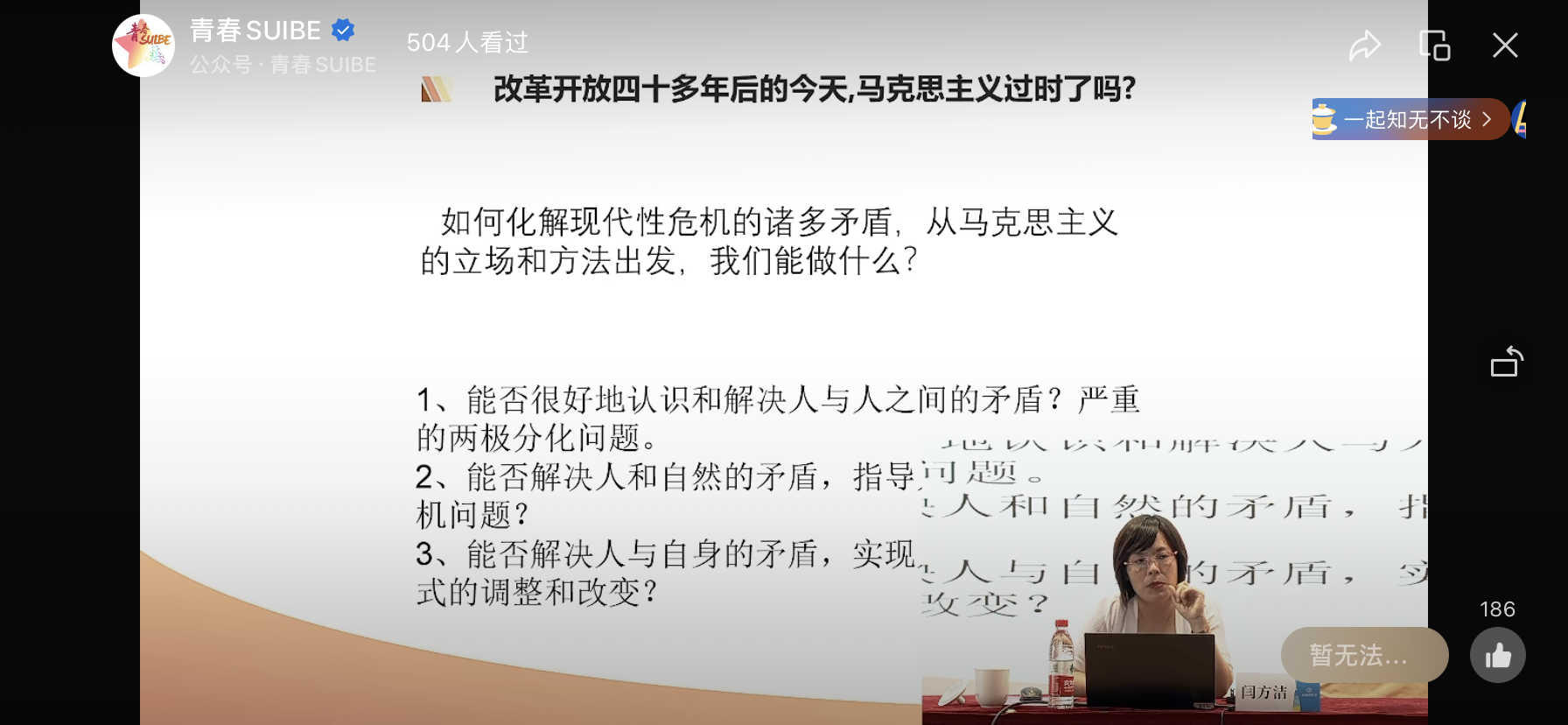闫方洁围绕马克思主义是指引人民美好生活的行动指南这一视角展开,通过几个层层递进的提问,深入浅出探讨“马克思主义对个人的意义”及“在我们追求美好生活的道路上为什么需要马克思主义”。
