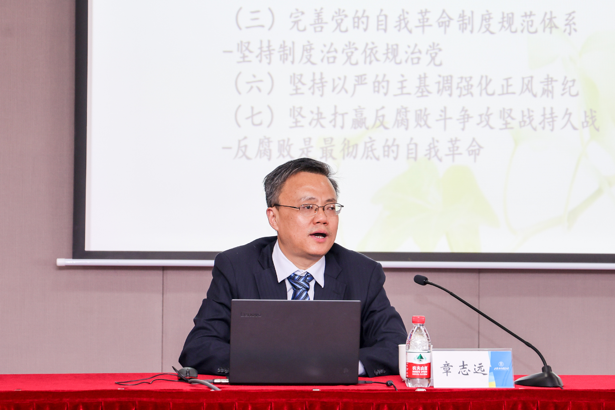 为全面学习宣传贯彻党的二十大精神,深入学习贯彻习近平总书记关于依规治党的重要论述精神,11月1日下午,学校邀请华东政法大学教授、博士生导师章志远作主题为“学习贯彻党的二十大精神,深入推进依规治党向纵深发展”专题辅导报告。会议以线上线下相结合的方式举行,学校党委理论学习中心组成员、全体中层正职干部在信息楼503会议室参加报告会,中层副职干部、教工党支部书记、系(专业)主任、巡察办成员、巡察组成员线上参加报告会。会议由校党委副书记、副校长祁明主持。