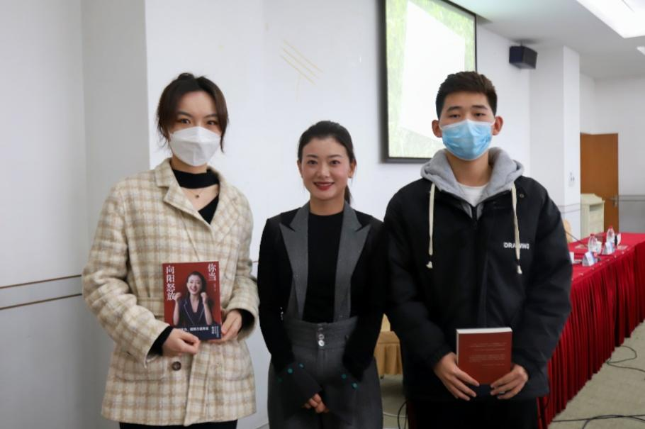 同学们被她的励志故事深深打动,在讲座结束后,纷纷举手向她提出现阶段的困惑与问题,梁晓芹针对大家的提问一一进行了解答,并向每一位提问者赠签名版著作《你当向阳怒放》。
